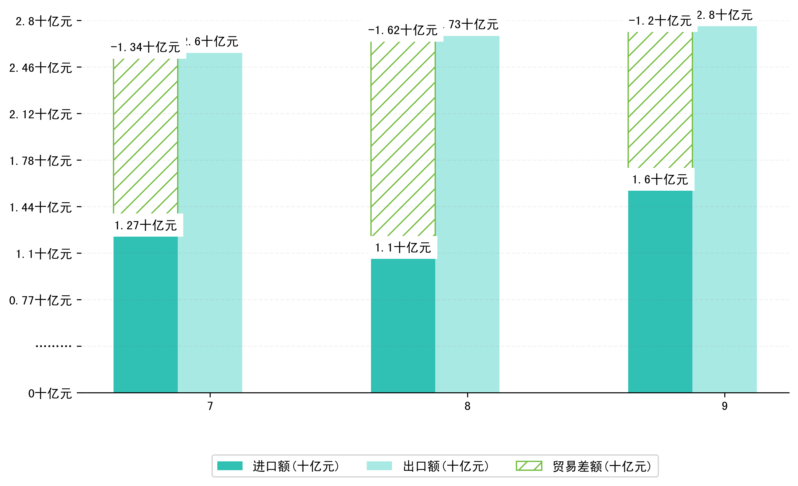 以人民币计,2025年9月秦皇岛市贸易差额为11,9653,1118万元(贸易顺差),相比上月减少了4,2570,5706万元,即5825,8269万美元;相比上年同期增加了9094,7306万元,同比增加8.23%。