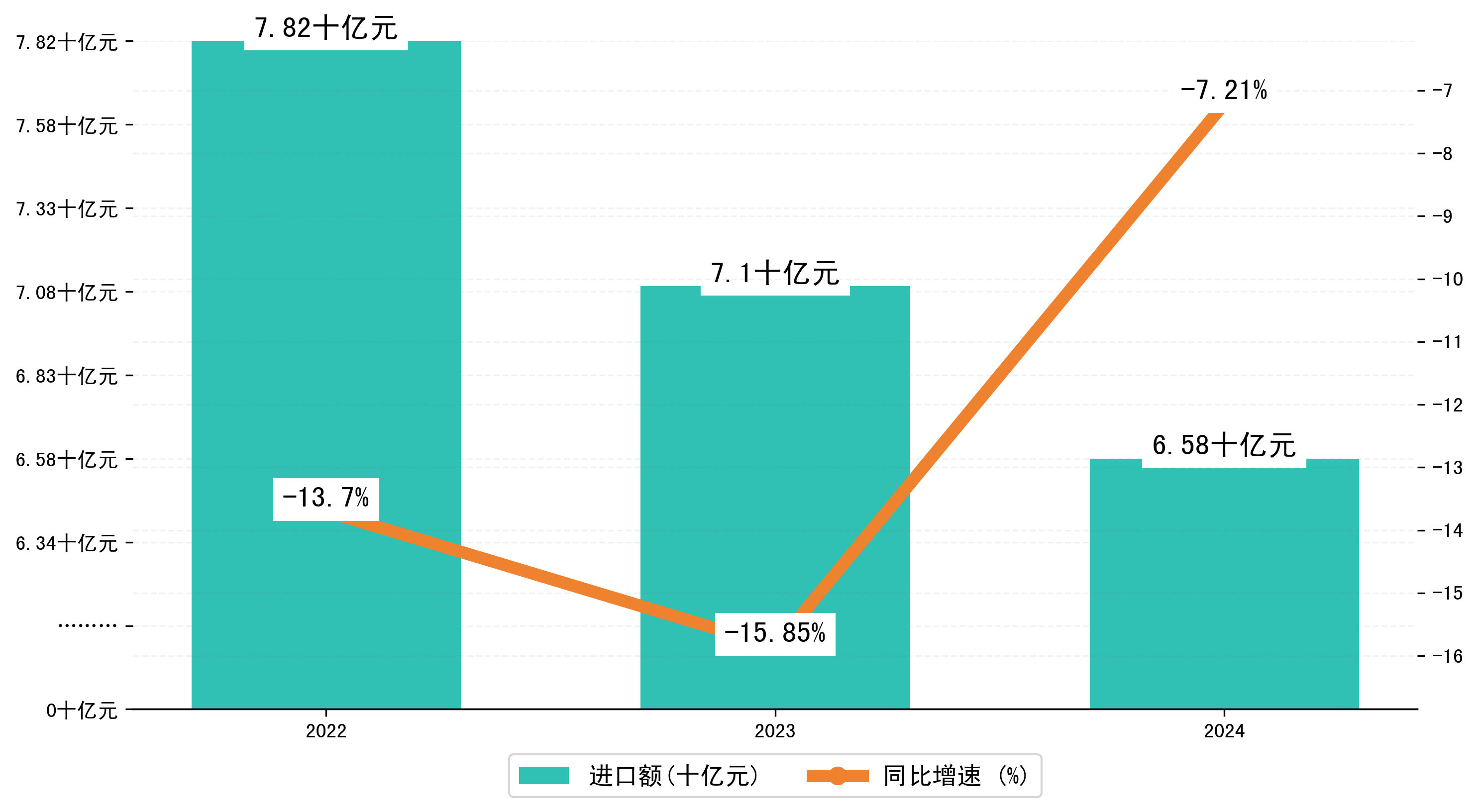 以人民币计,2024年1-6月秦皇岛市进口额为65,8411.27万元,相比上年同期减少了5,1169.9902万元,同比减少了-6.90%。
