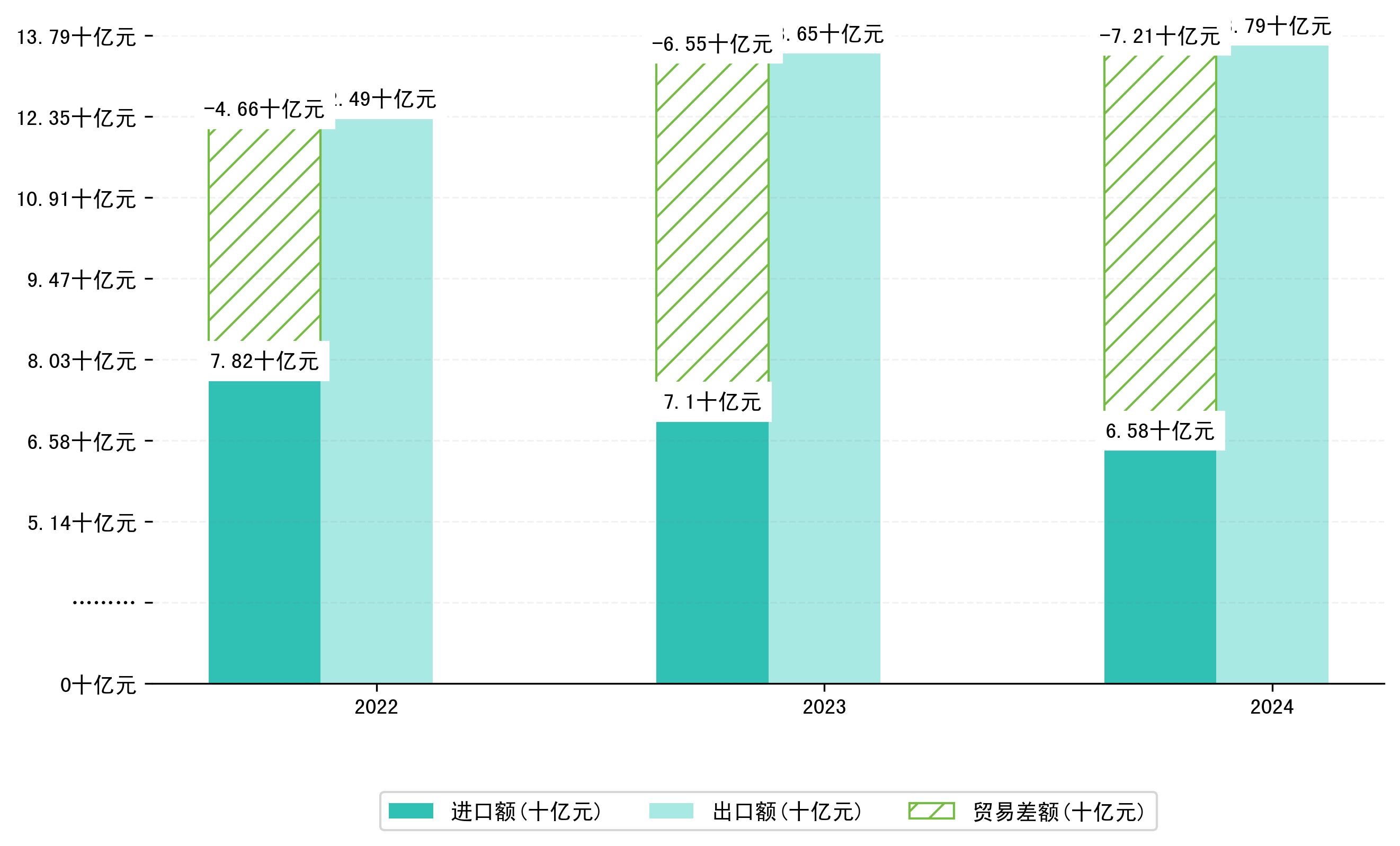 以人民币计,2024年1-6月秦皇岛市贸易差额为72,0622,8862万元(贸易顺差),相比上年同期增加了6,5478,5022万元,同比增加9.99%。