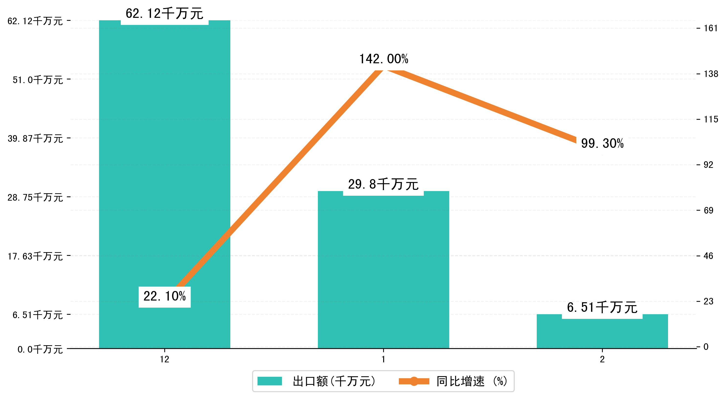 以人民币计,2023年1-2月曲靖市出口额为3,6308.2797万元,相比上年同期增加了1,8086.313万元,同比增加了99.30%。