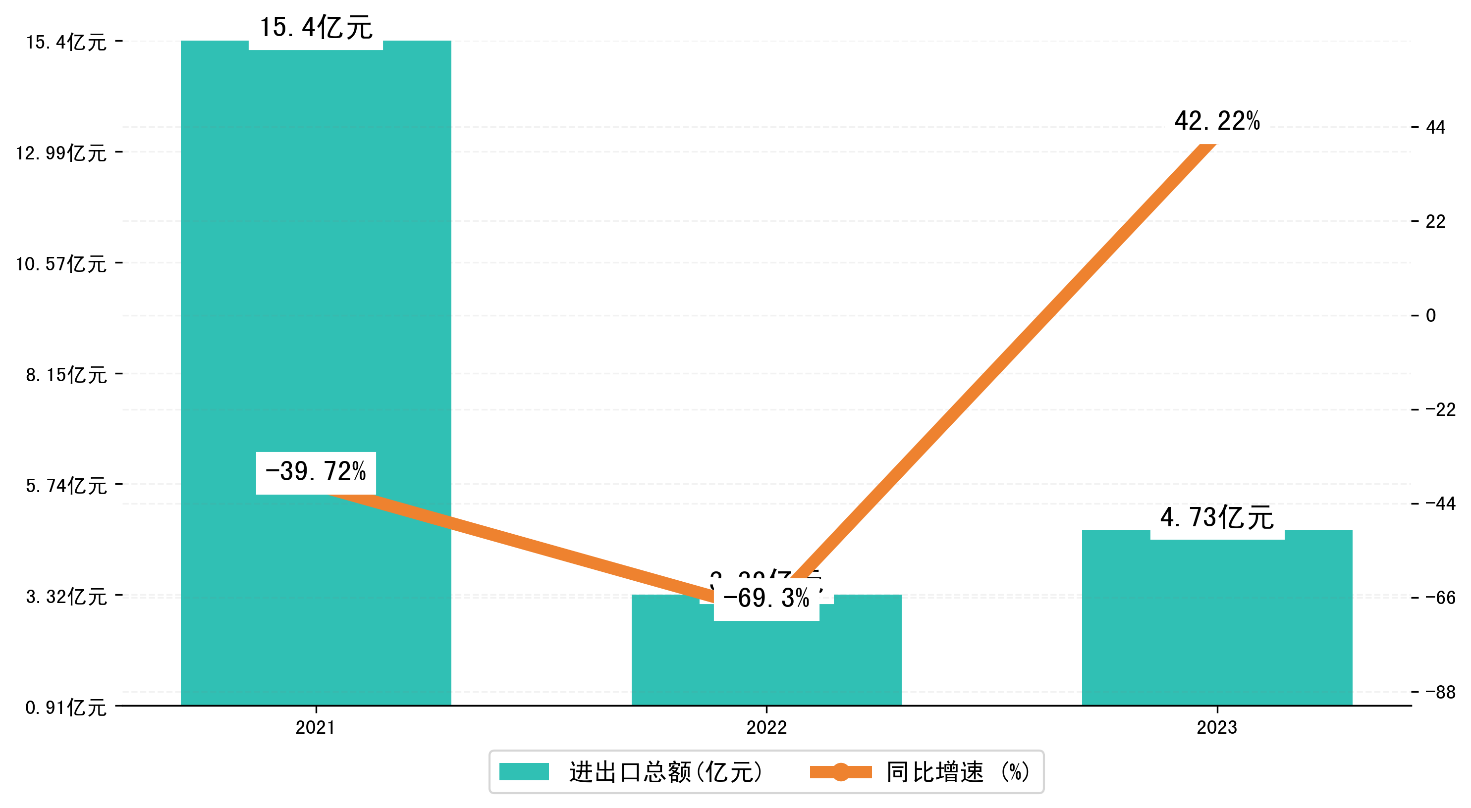 以人民币计,2023年1-2月曲靖市进出口总额为4,7283.6521万元,相比上年同期增加了1,4037.3441万元,同比增加了39.40%。