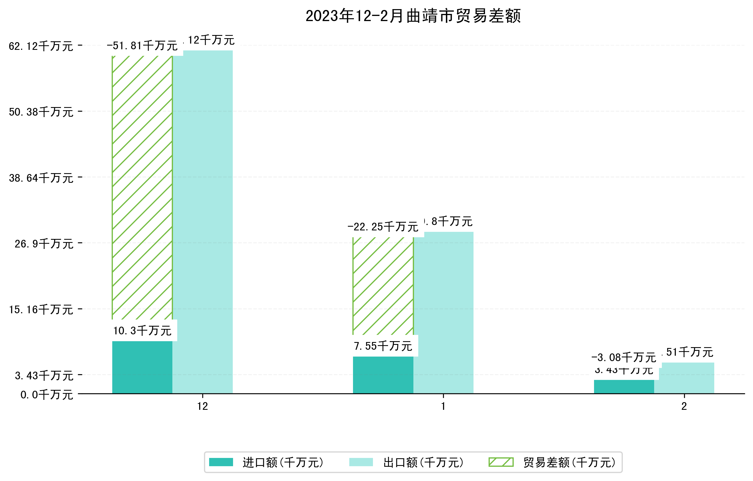 2023年2月曲靖市进出口总额及进出口差额统计分析