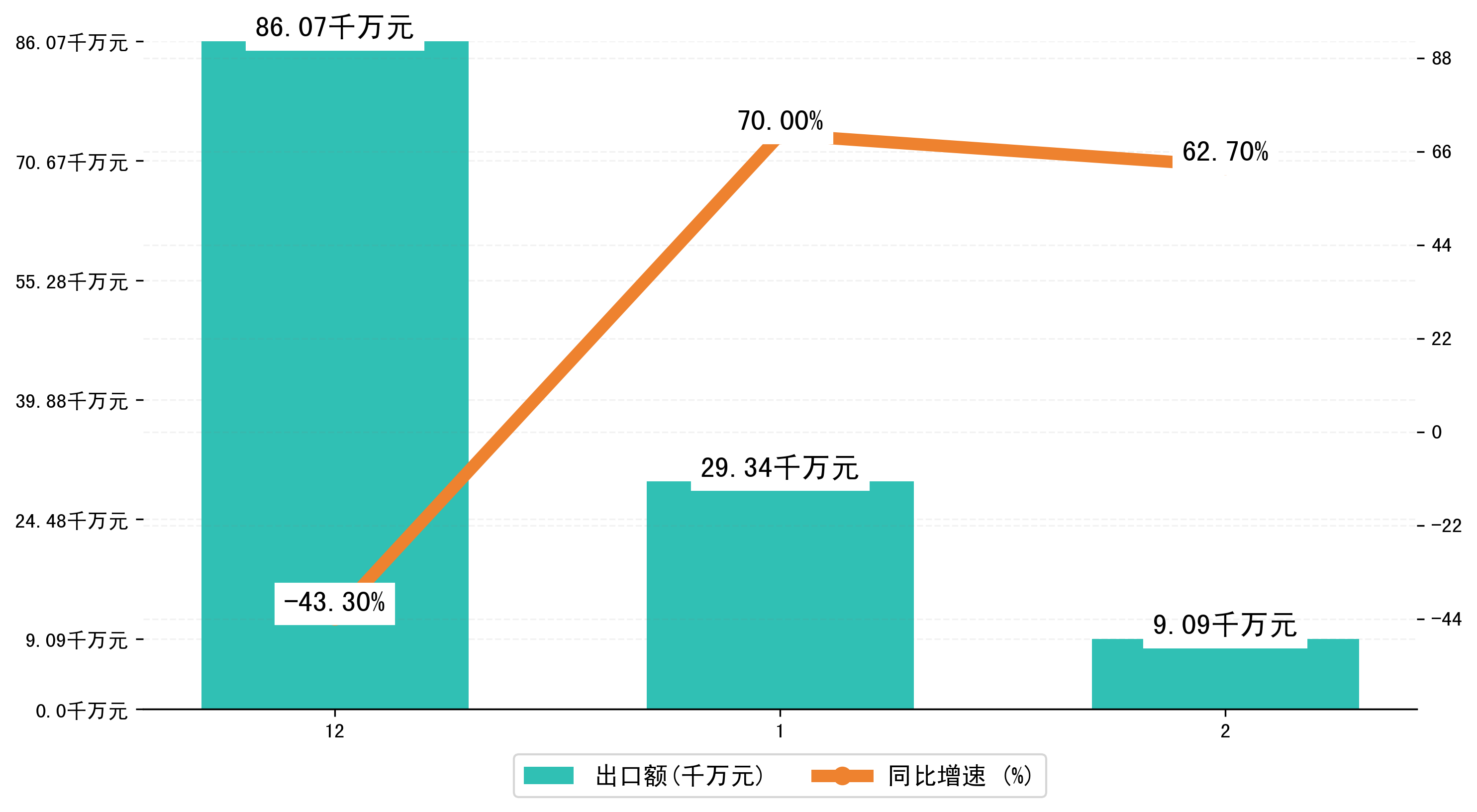 以美元计,2024年2月曲靖市出口额为1277.9261万美元,相比上月减少了2838.2279万美元;相比上年同期增加了317.7927万美元,同比增加58.40%。