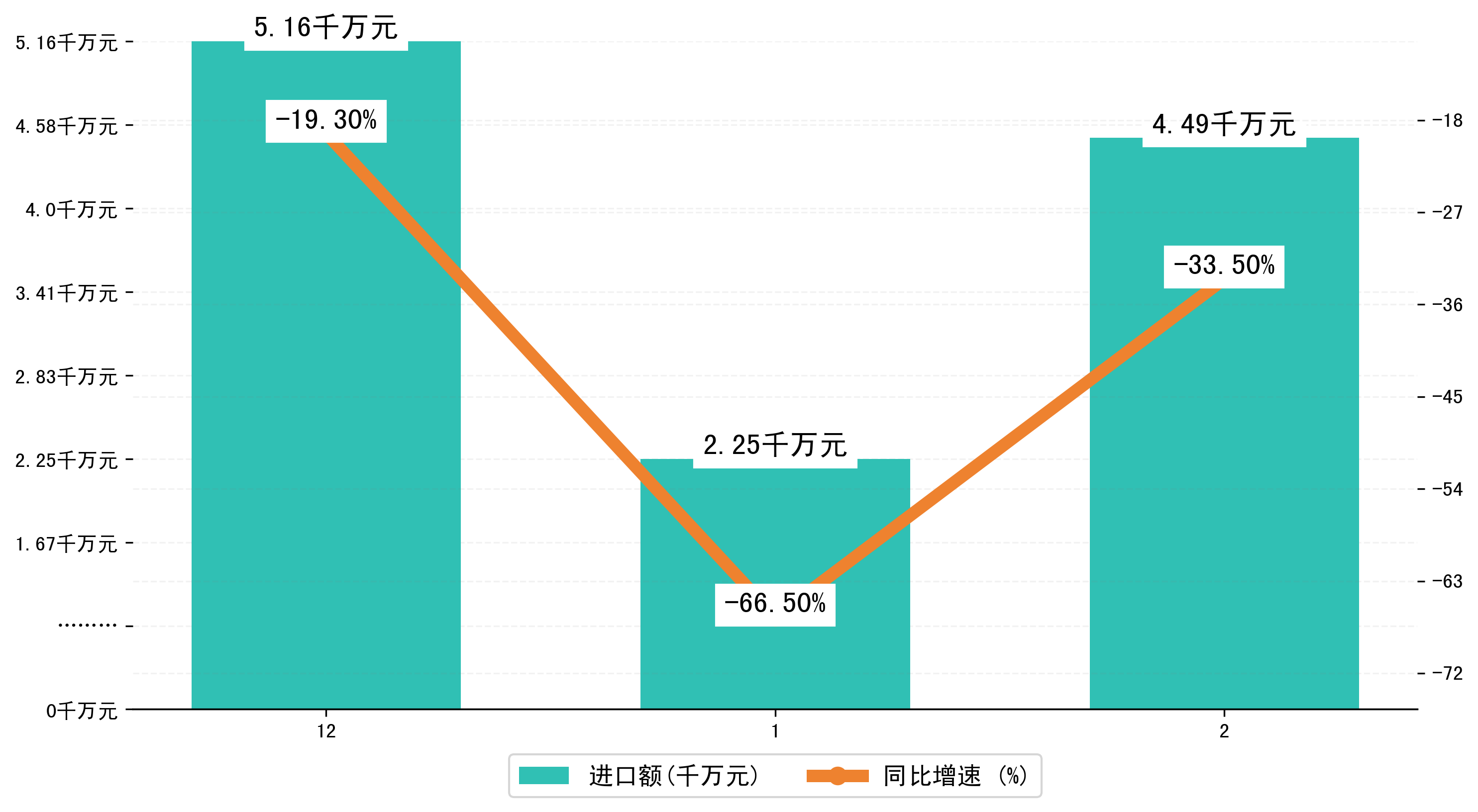 以人民币计,2024年1-2月曲靖市进口额为6737.8701万元,相比上年同期减少了4237.5023万元,同比减少了-33.50%。
