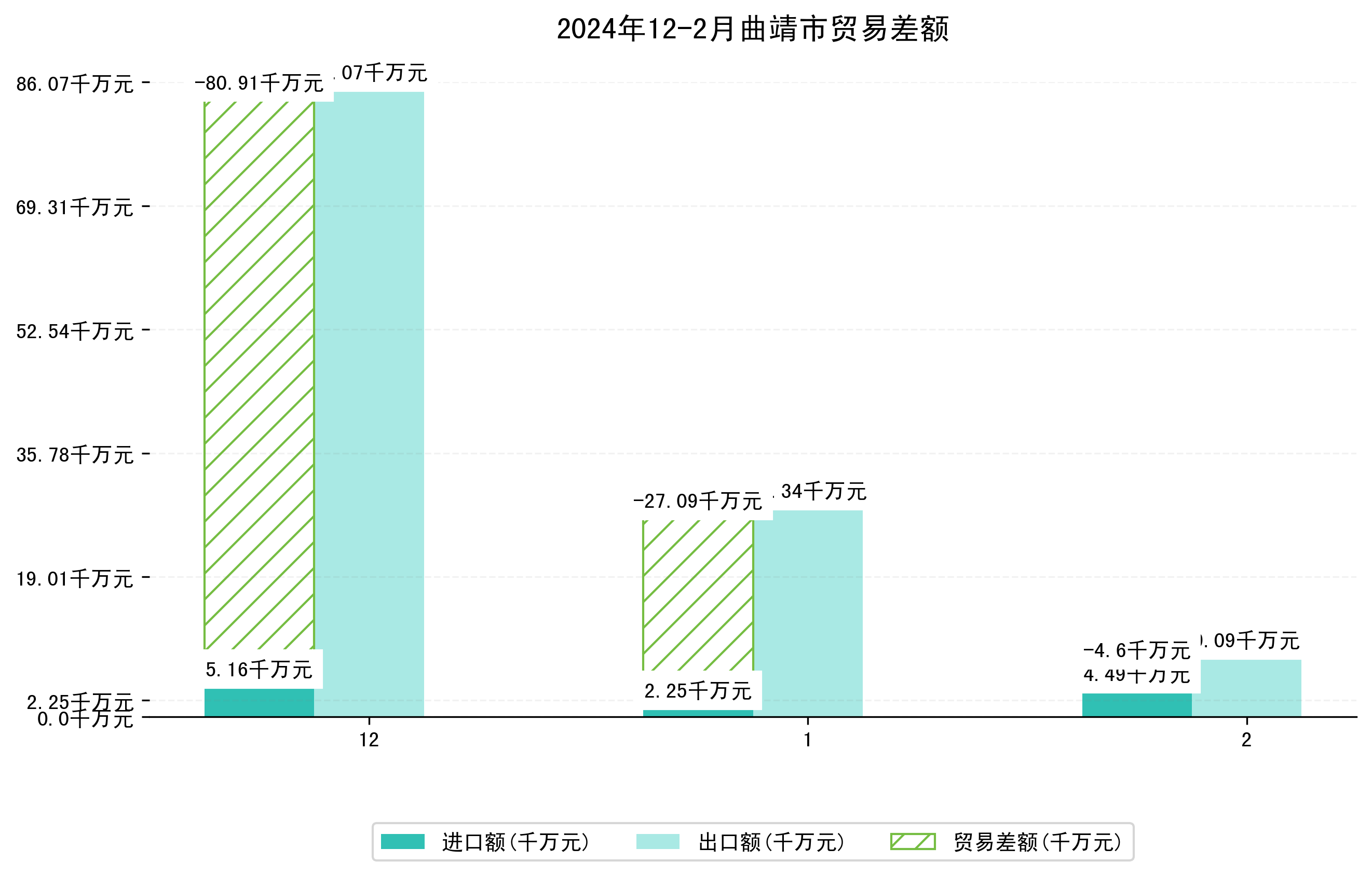 2024年2月曲靖市进出口总额及进出口差额统计分析