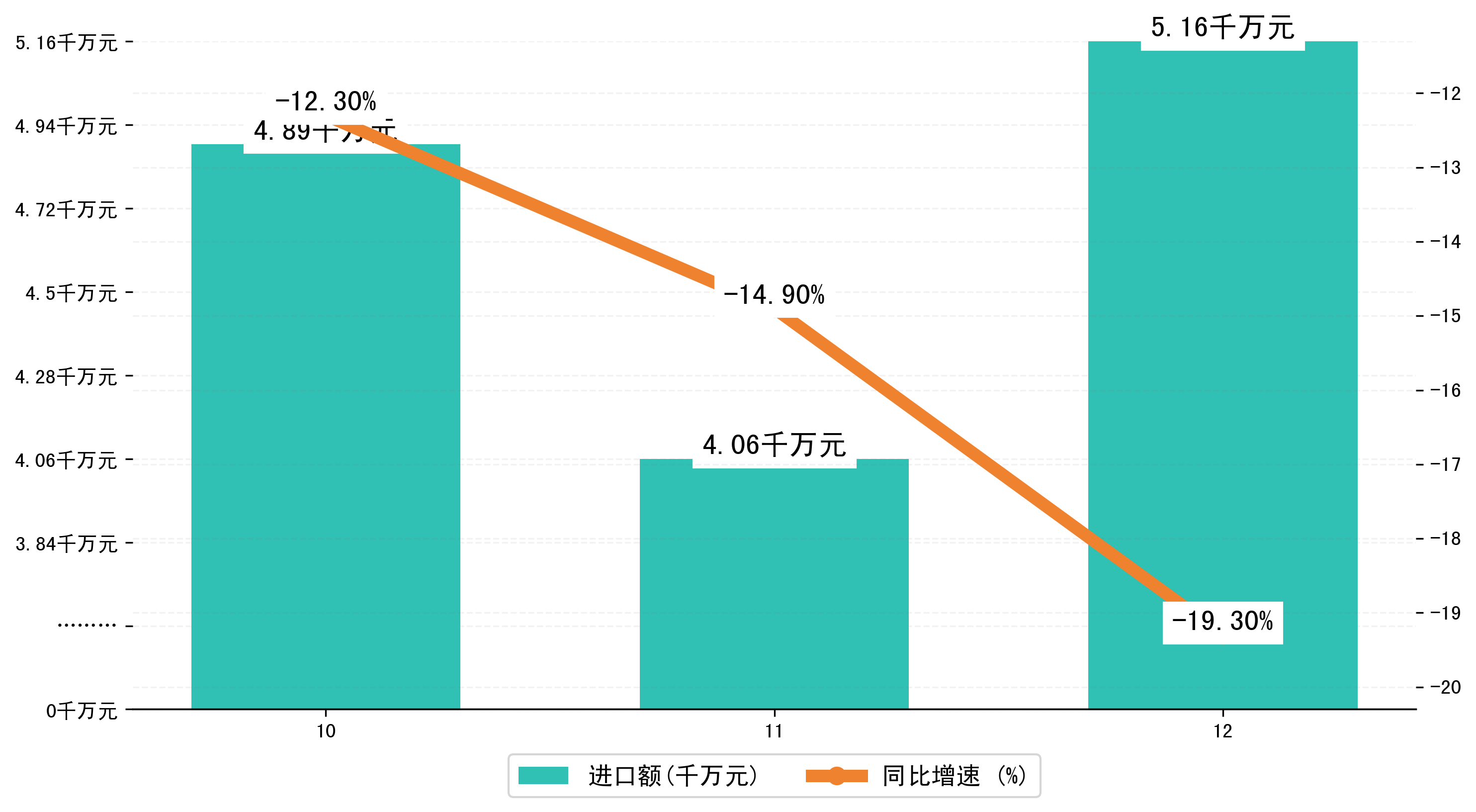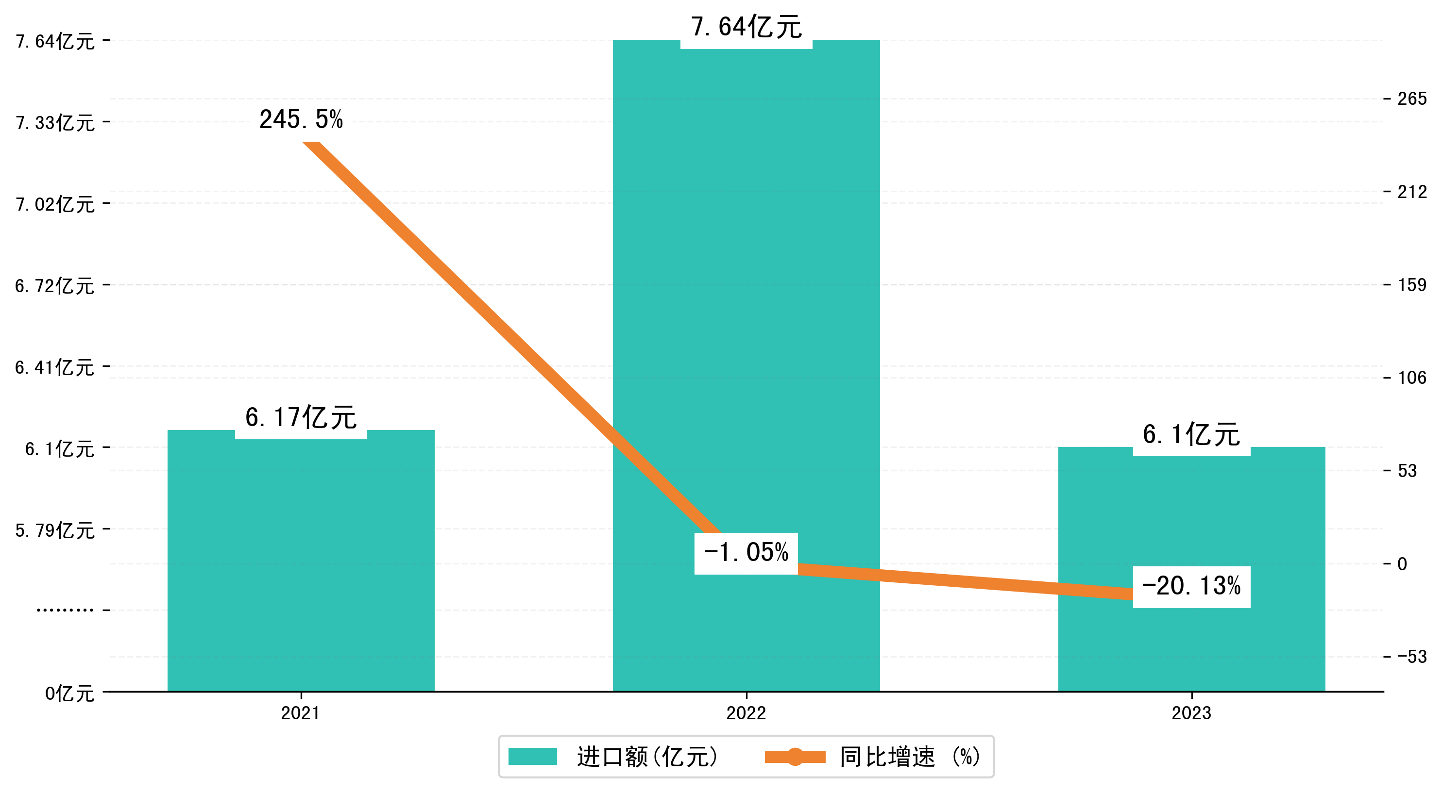 以人民币计,2023年1-12月曲靖市进口额为6,1011.8747万元,相比上年同期减少了1,5380.144万元,同比减少了-19.30%。