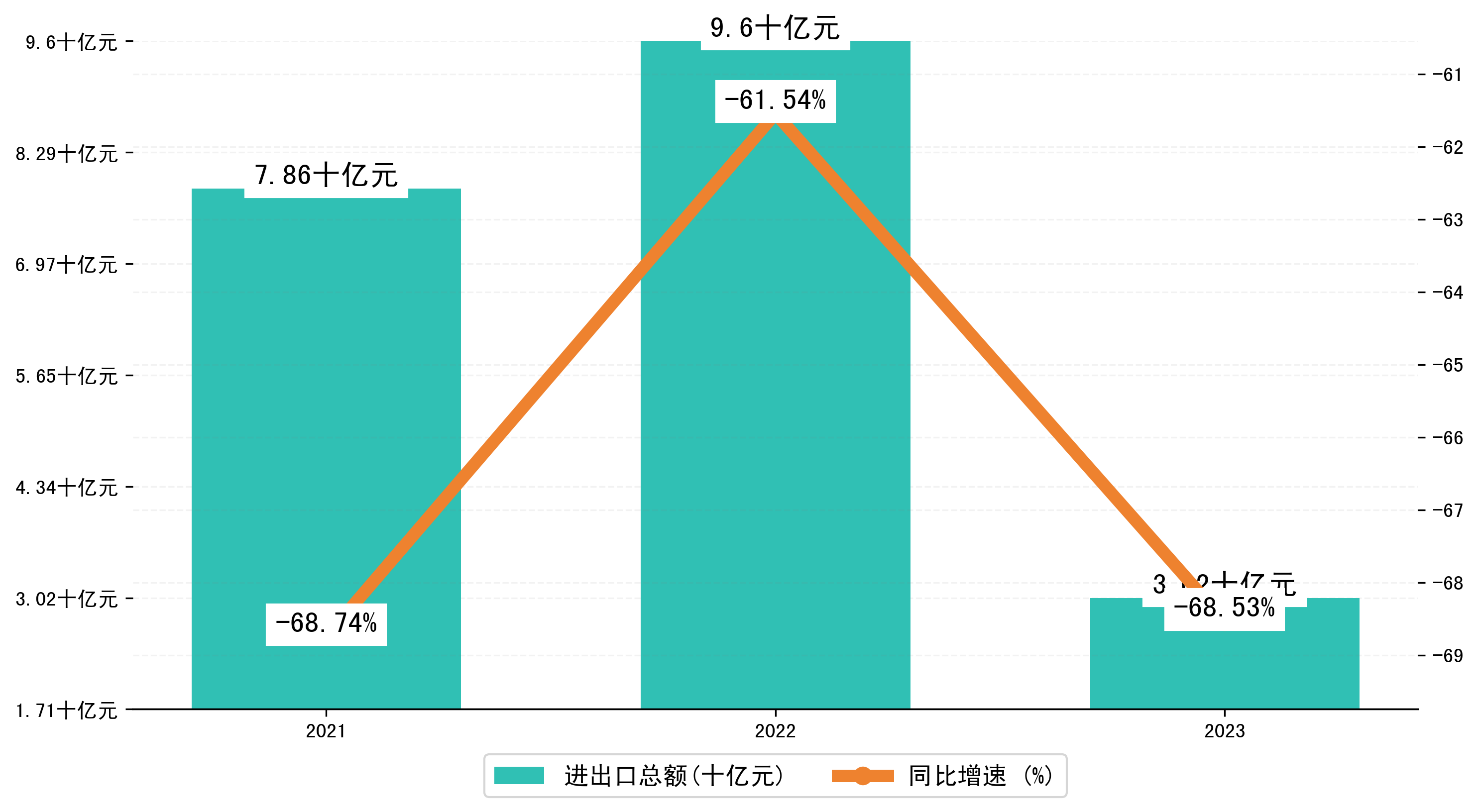 以人民币计,2023年1-12月曲靖市进出口总额为30,2201.9563万元,相比上年同期减少了65,8119.3924万元,同比减少了-39.70%。