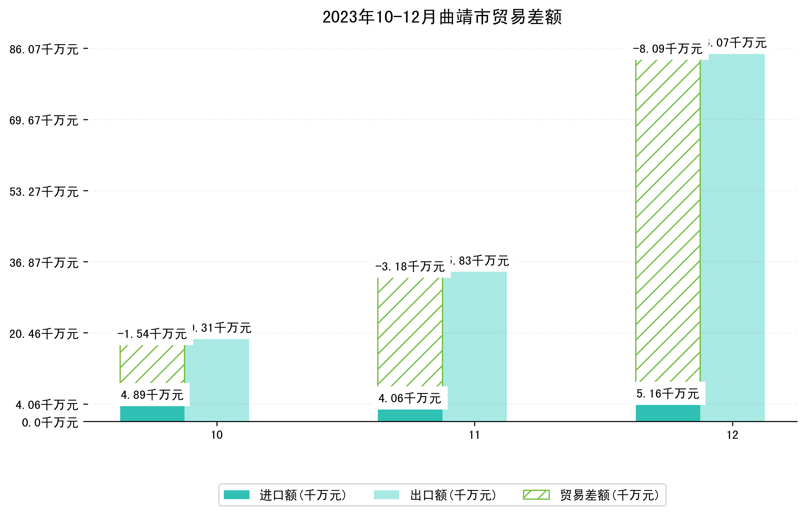 2023年12月曲靖市进出口总额及进出口差额统计分析