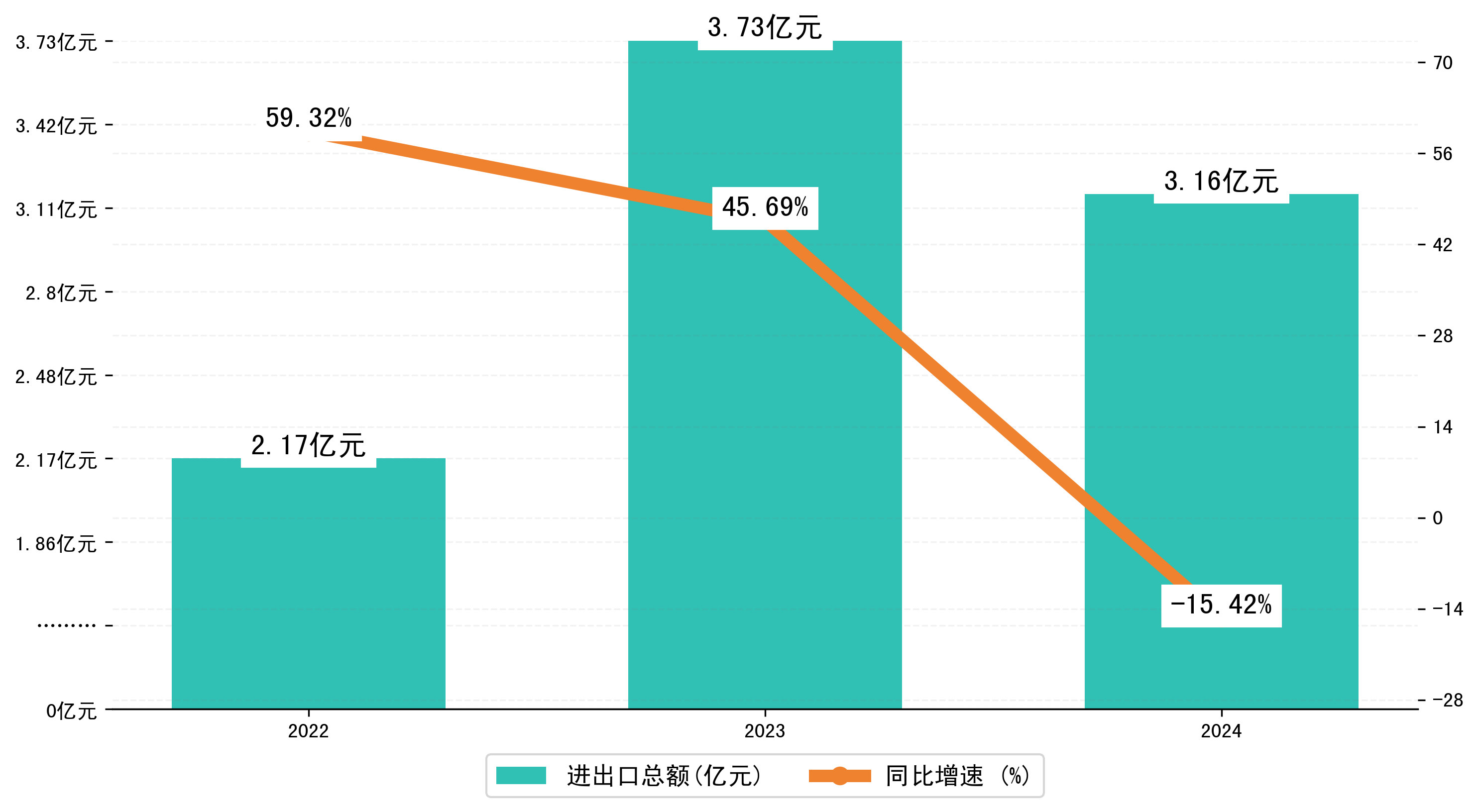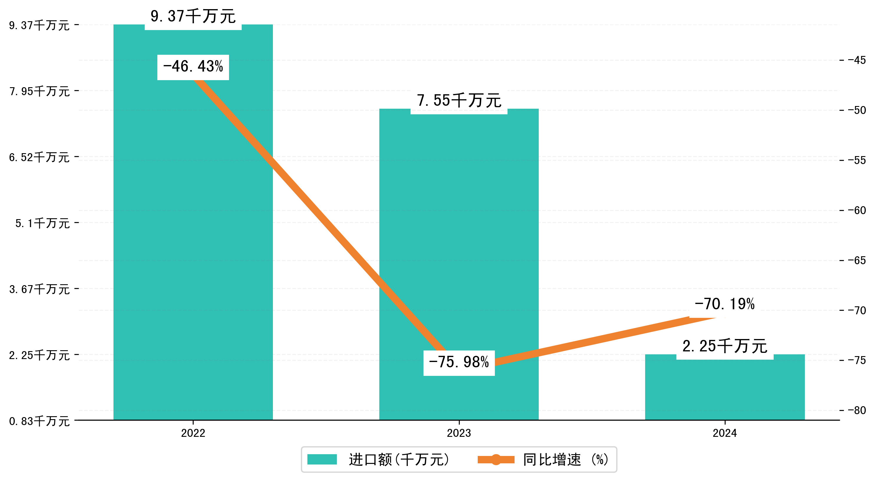 以美元计,2024年1月曲靖市进口额为317.4475万美元,相比上月减少了405.6713万美元;相比上年同期减少了766.4037万美元,同比减少-67.00%。