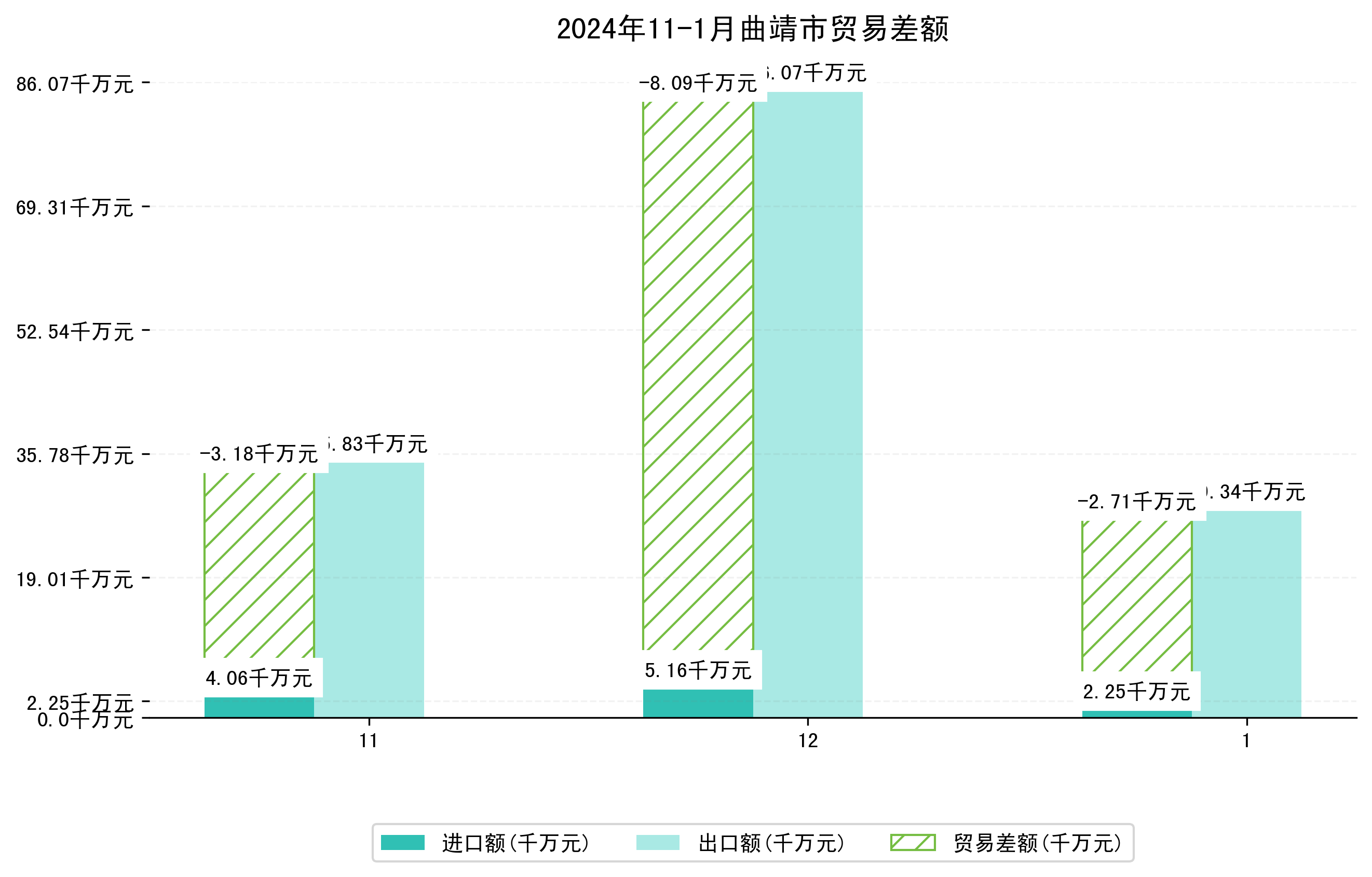 2024年1月曲靖市进出口总额及进出口差额统计分析