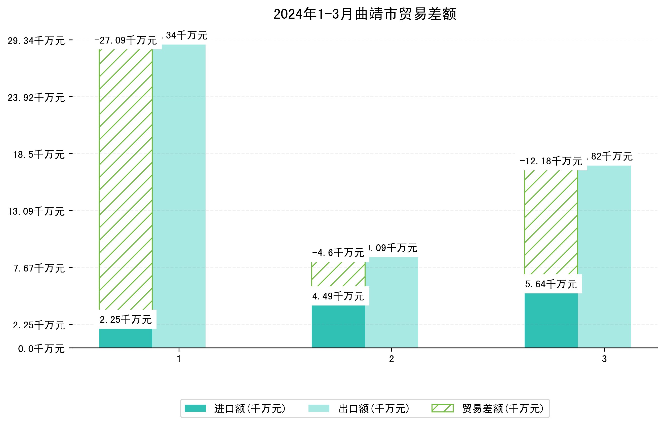 2024年3月曲靖市进出口总额及进出口差额统计分析