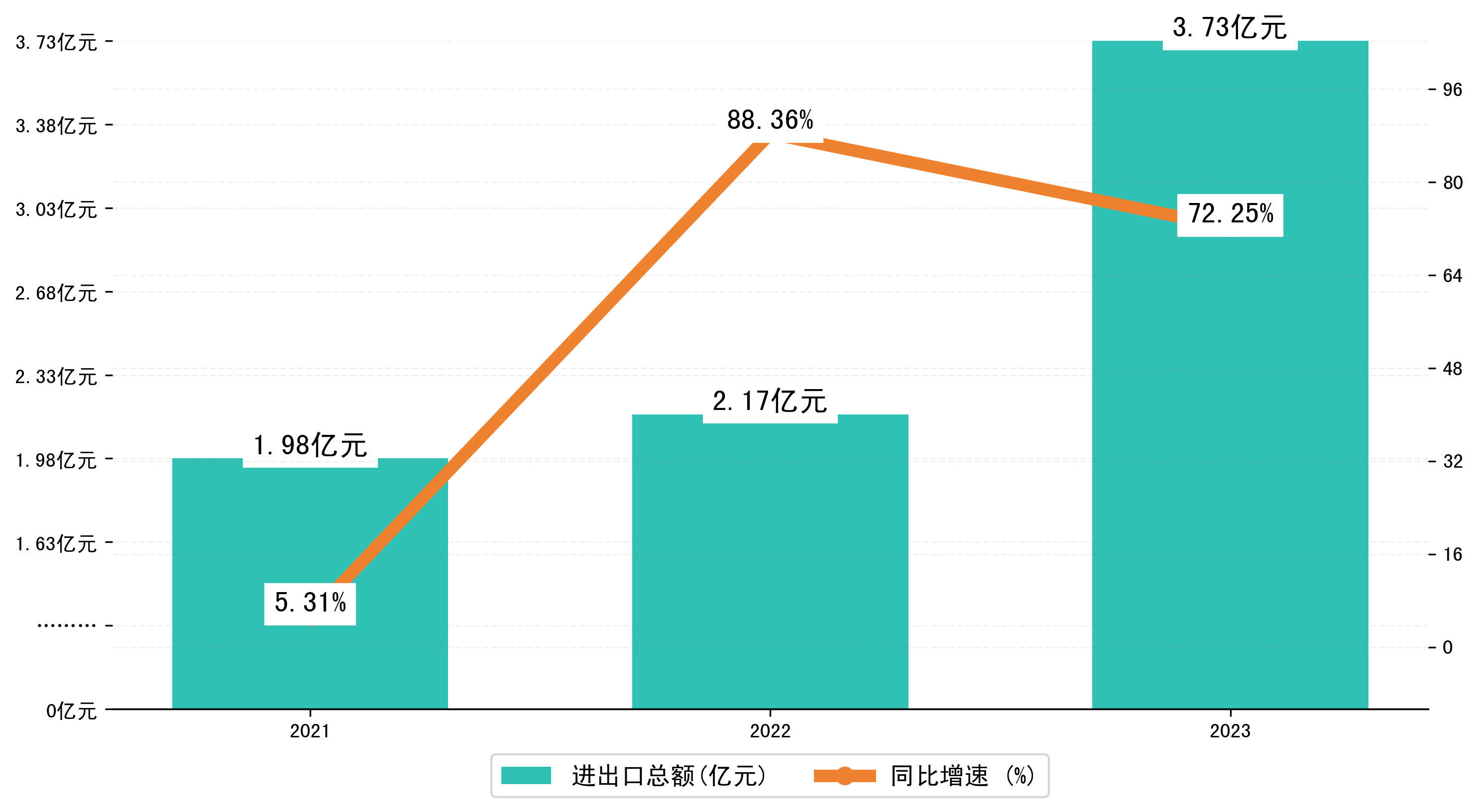以人民币计,2023年1-1月曲靖市进出口总额为3,7349.8382万元,相比上年同期增加了1,5665.8385万元,同比增加了67.50%。