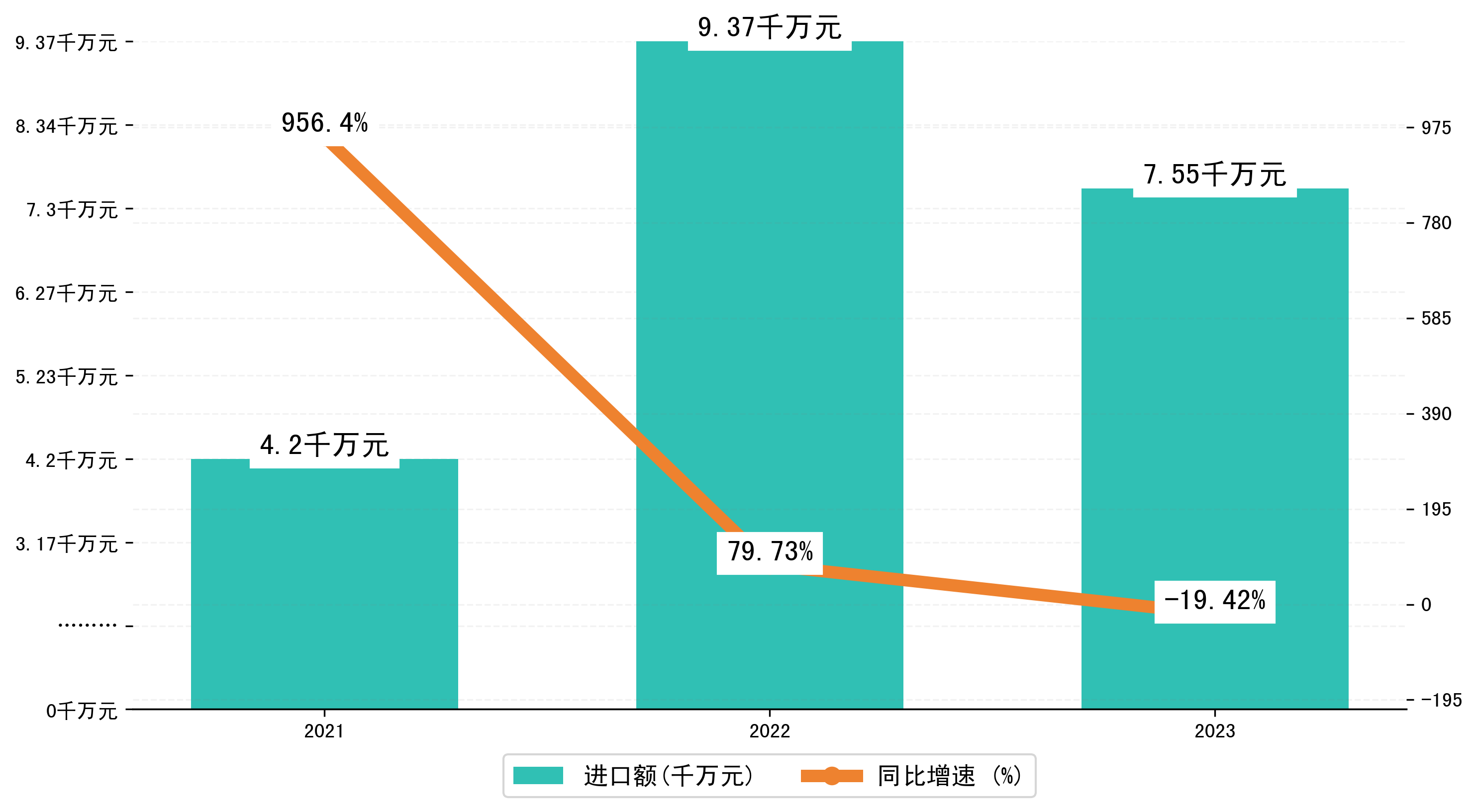 以人民币计,2023年1月曲靖市进口额为7549.4023万元,相比上月减少了2755.0589万元;相比上年同期减少了1819.9411万元,同比减少了-24.40%。