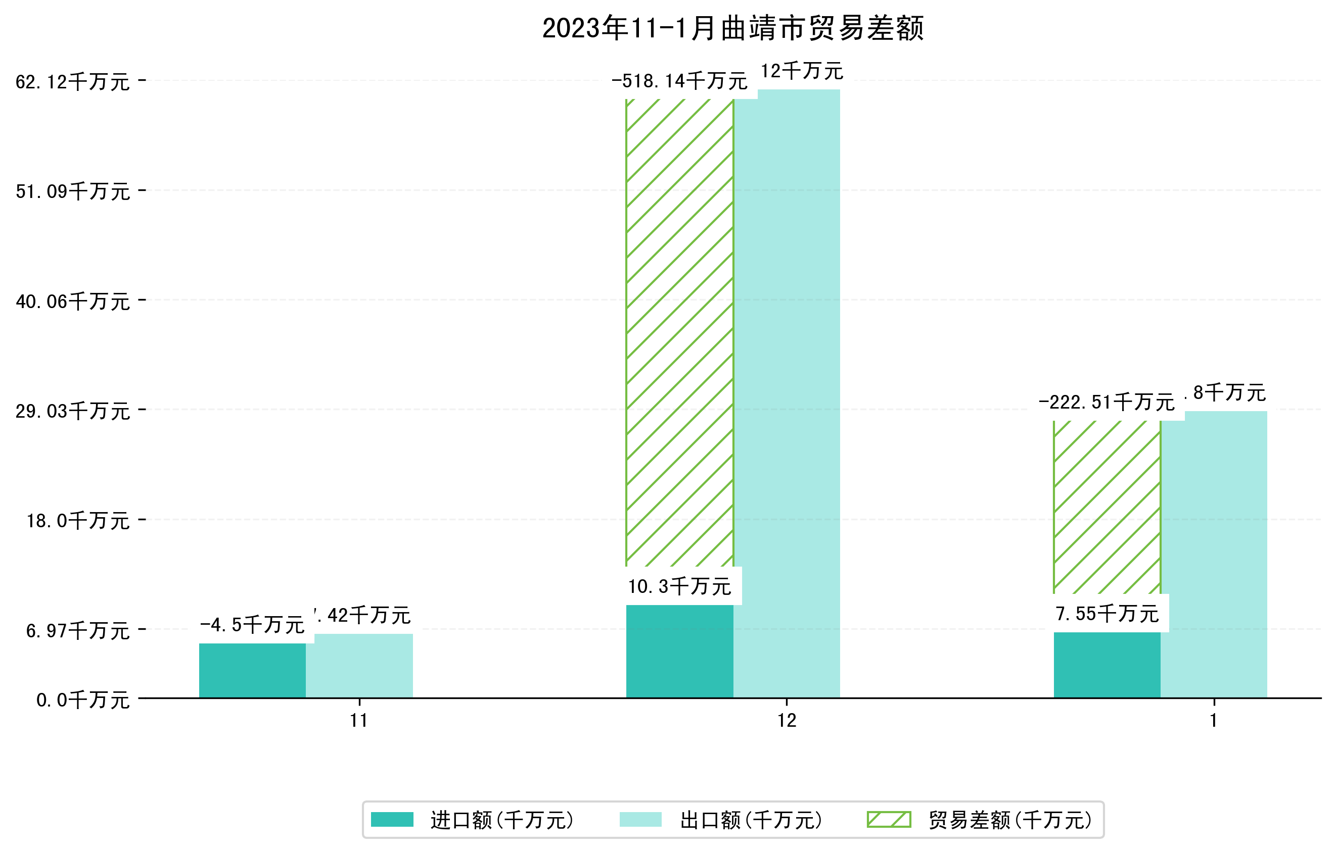 2023年1月曲靖市进出口总额及进出口差额统计分析