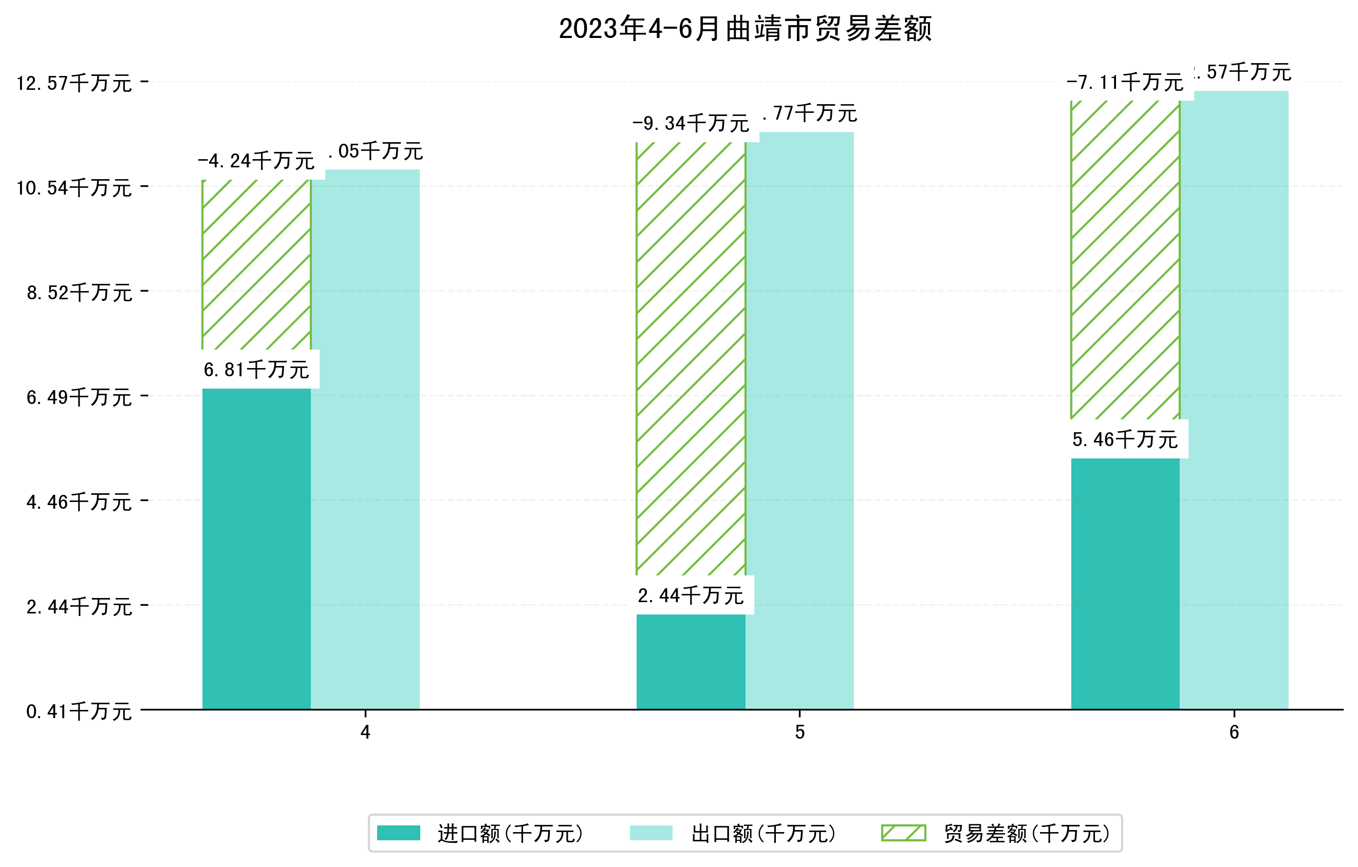2023年6月曲靖市进出口总额及进出口差额统计分析