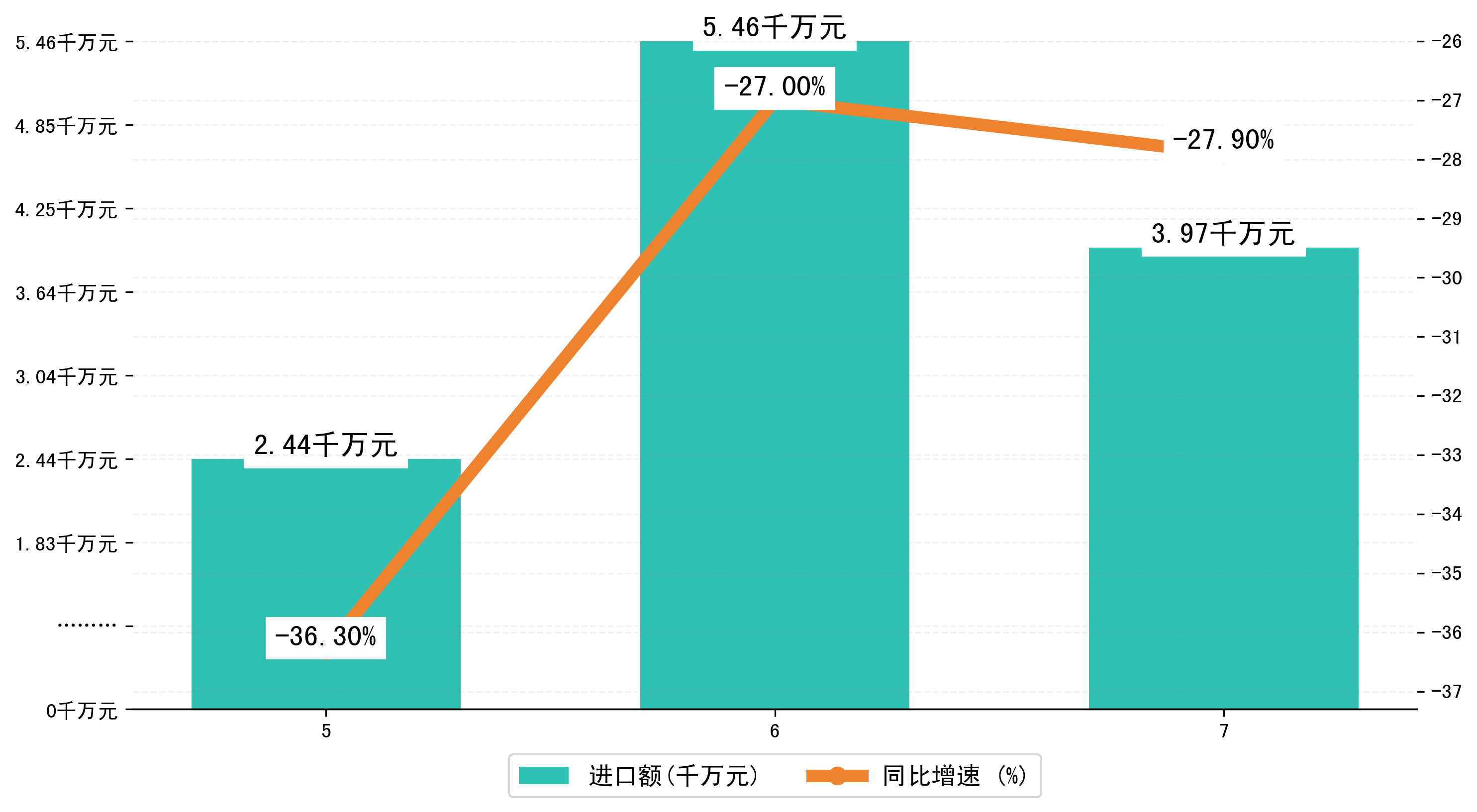(图三:2023年5-7月曲靖市进口额)