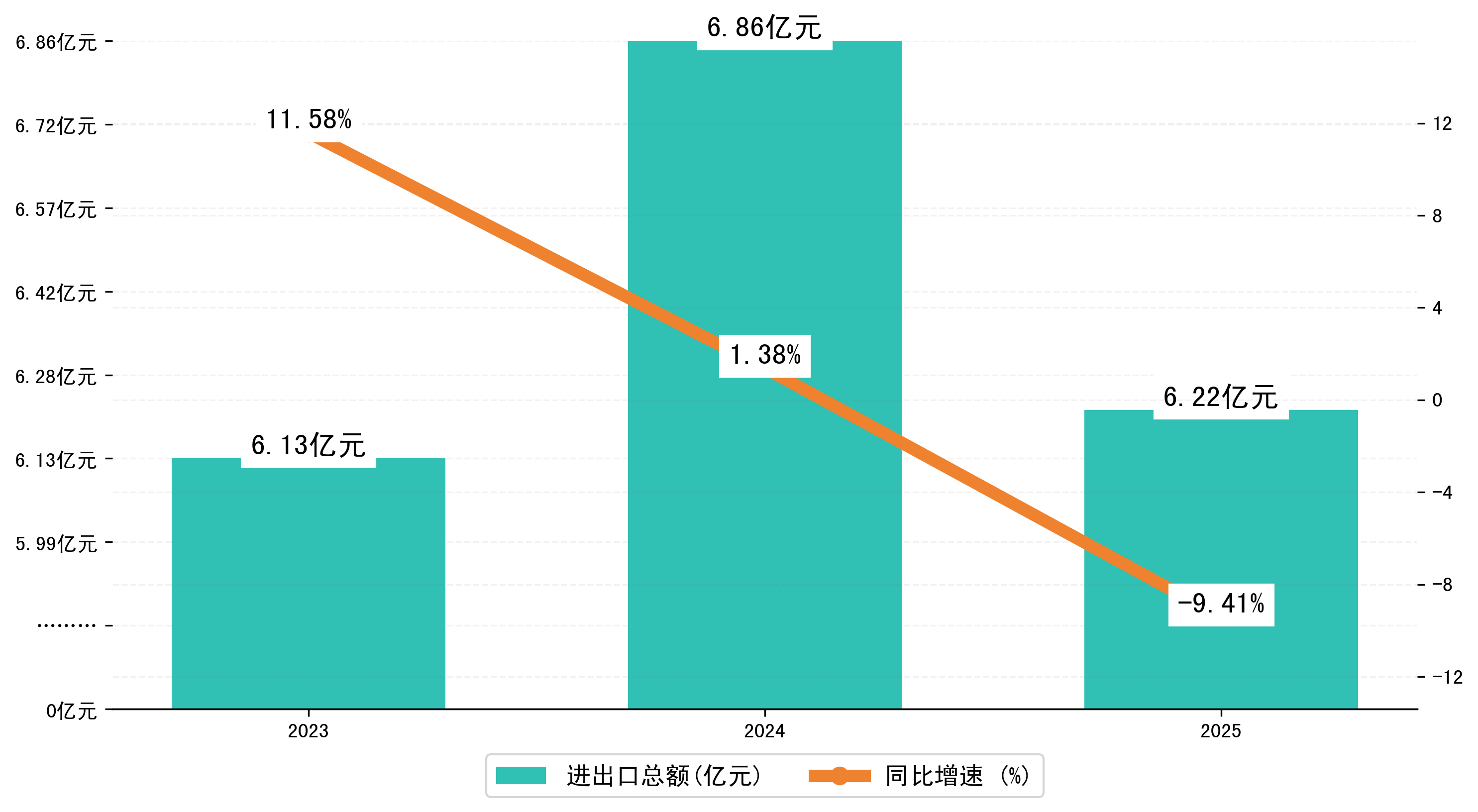 以人民币计,2025年1-3月曲靖市进出口总额为6,2165.408万元,相比上年同期减少了6458.8033万元,同比减少了-9.20%。