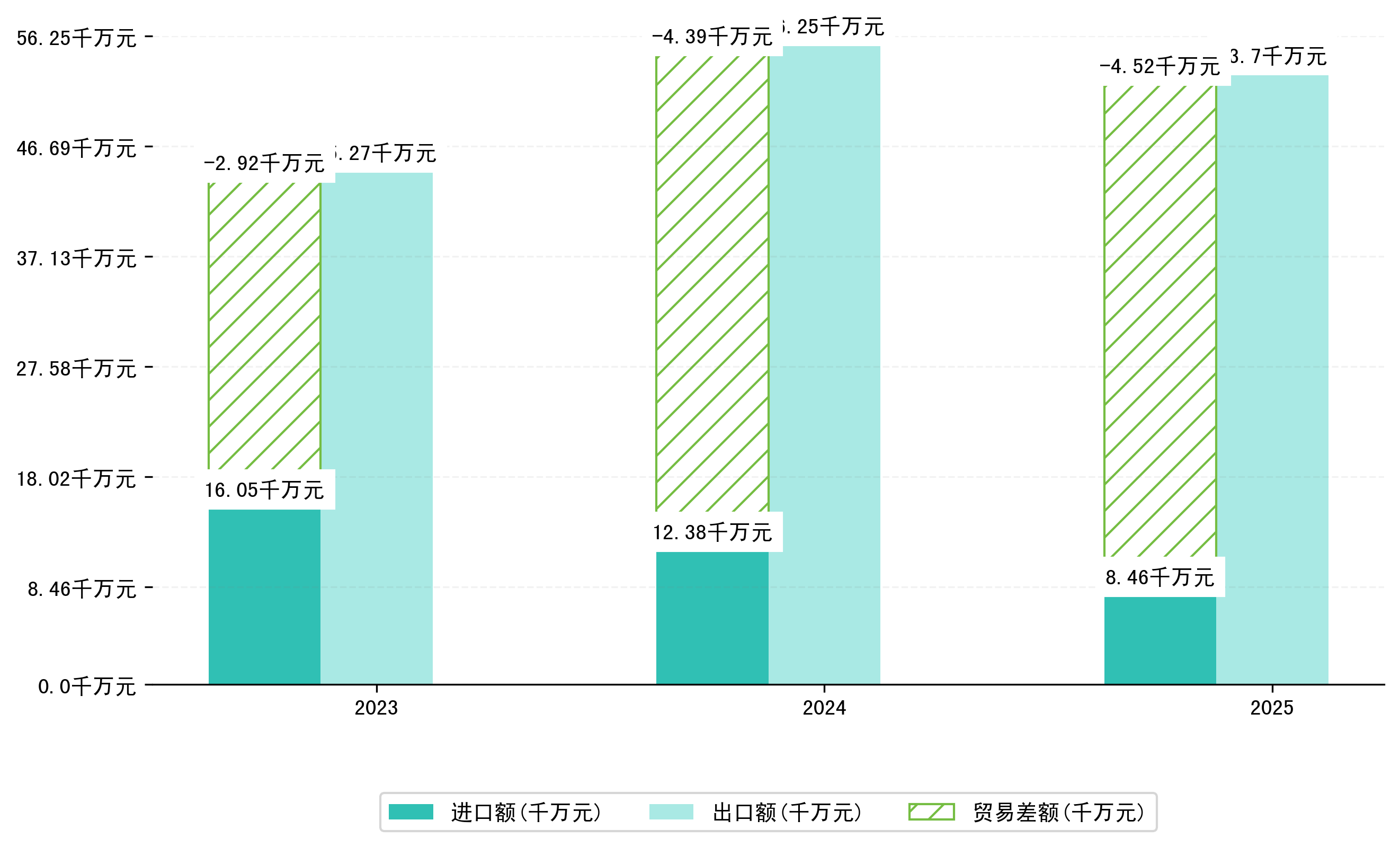 以人民币计,2025年1-3月曲靖市贸易差额为4,5239,3462万元(贸易顺差),相比上年同期增加了1367,4015万元,同比增加3.12%。