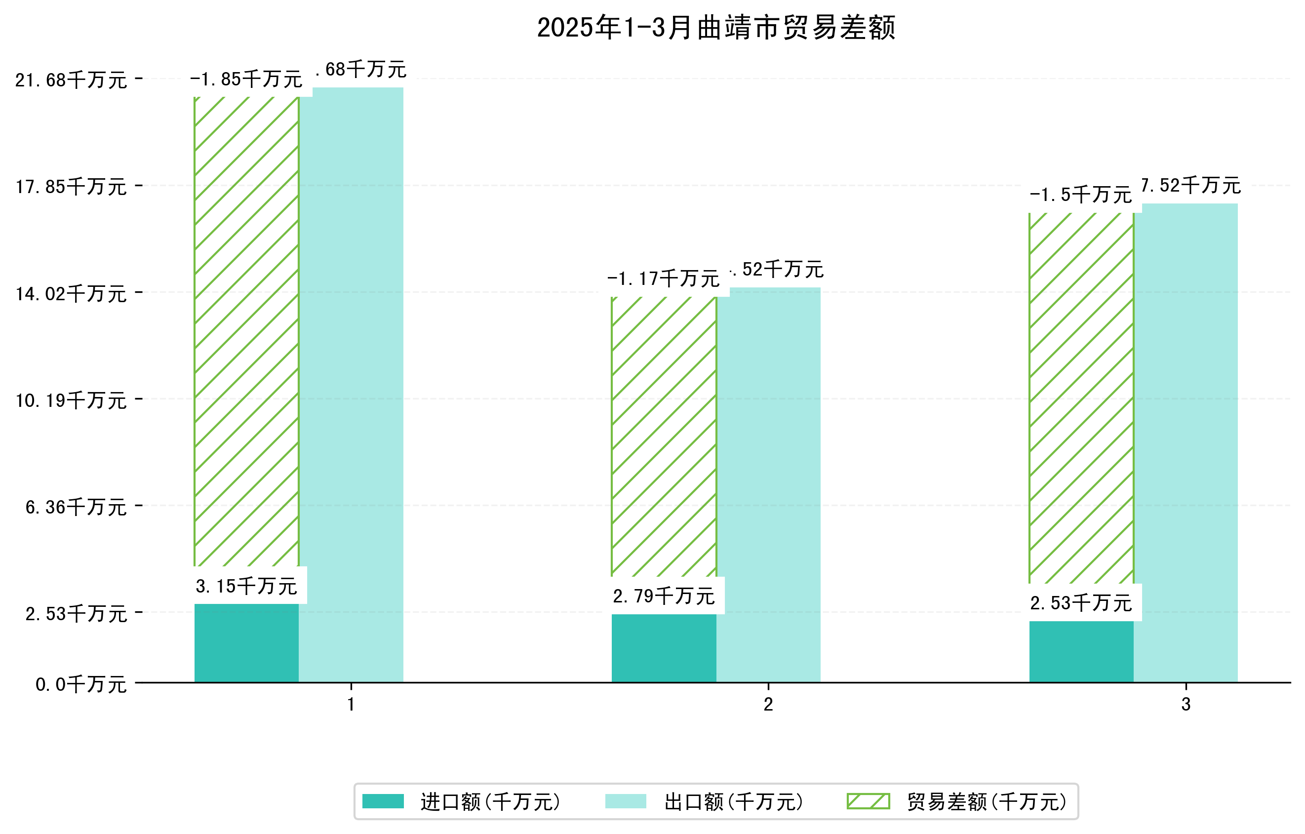 一、2025年3月曲靖市单月出口总额及进出口差额统计分析