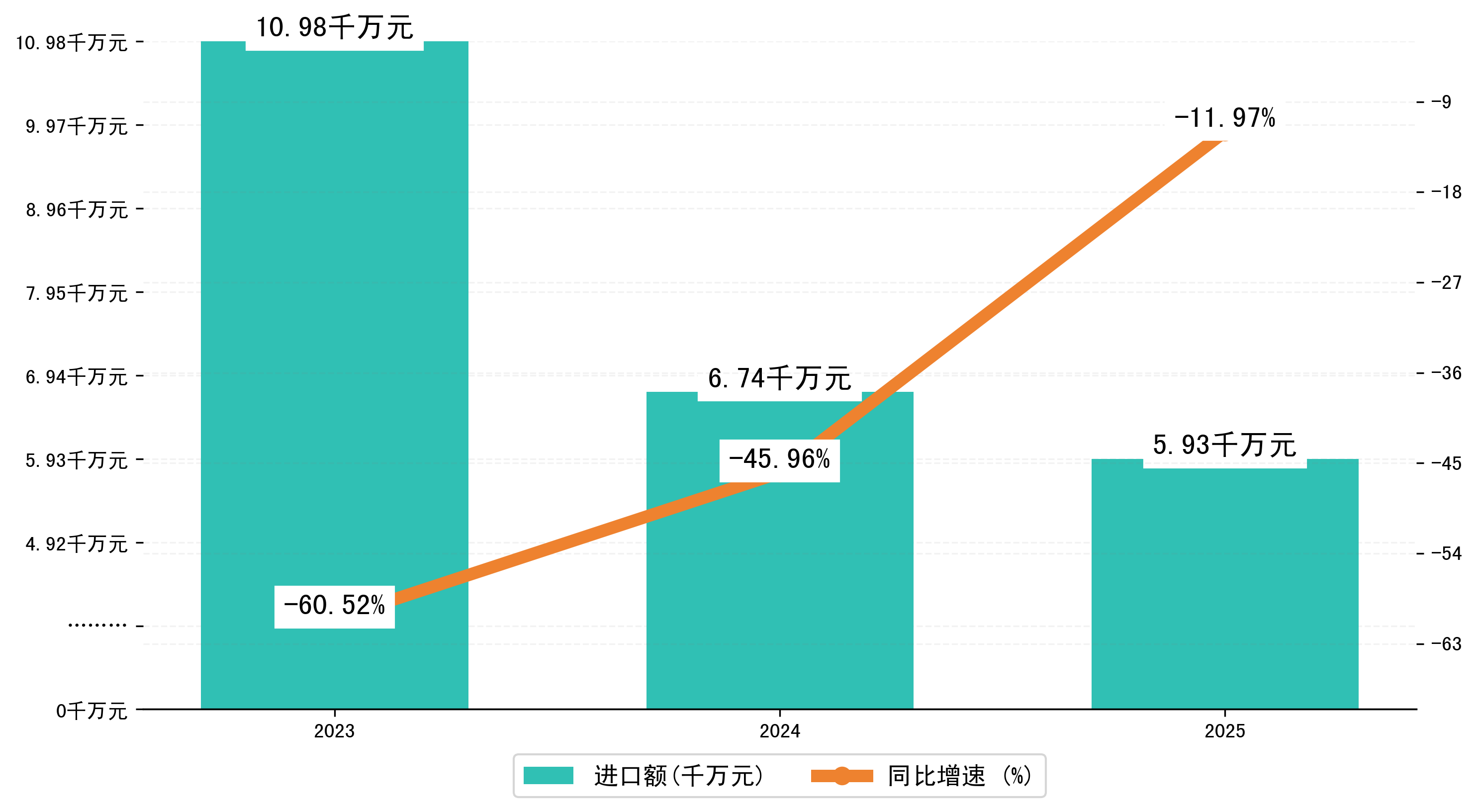 以人民币计,2025年2月曲靖市进口额为2785.9468万元,相比上月减少了359.305万元;相比上年同期减少了1701.737万元,同比减少了-10.30%。