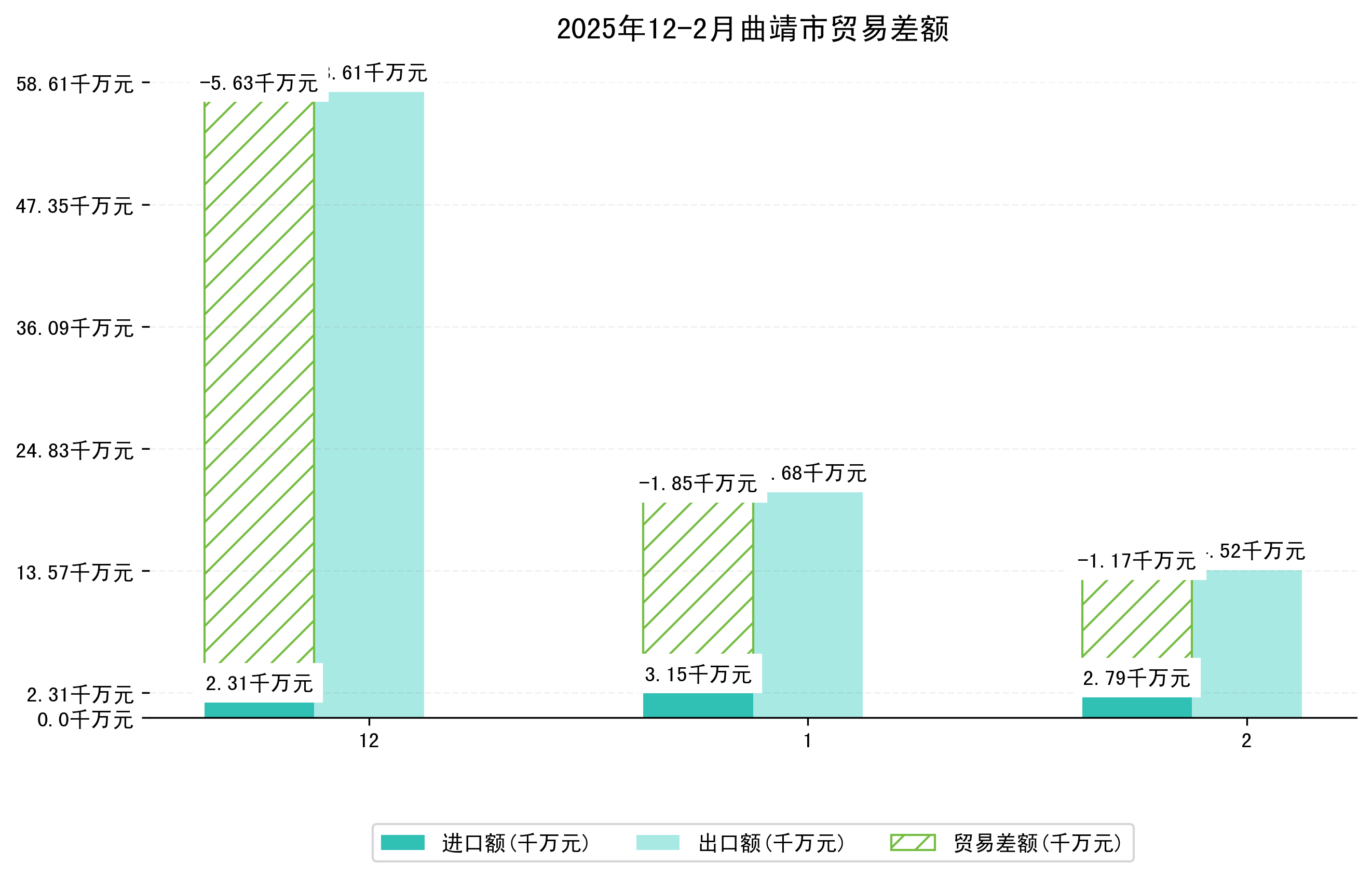 2025年2月曲靖市进出口总额及进出口差额统计分析