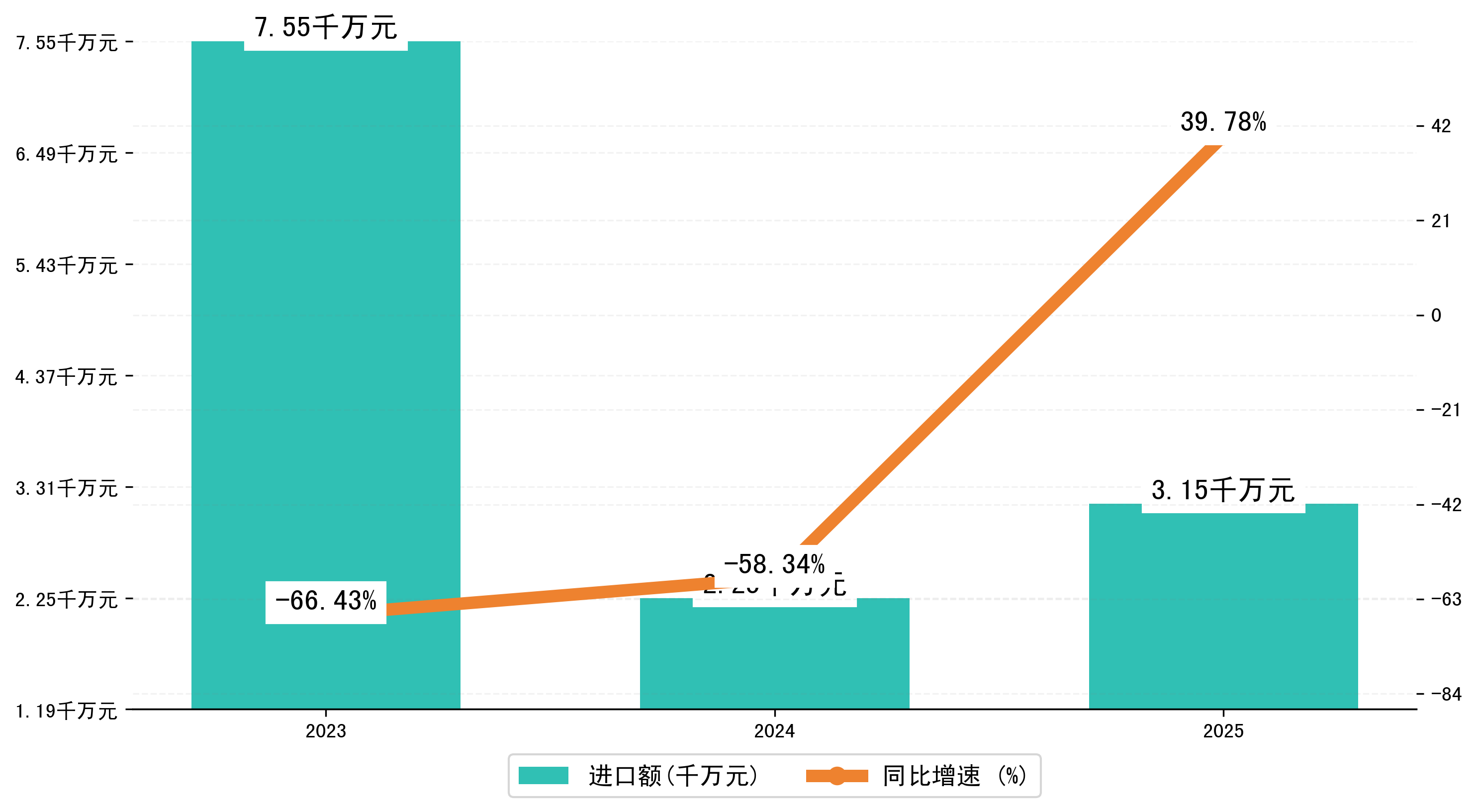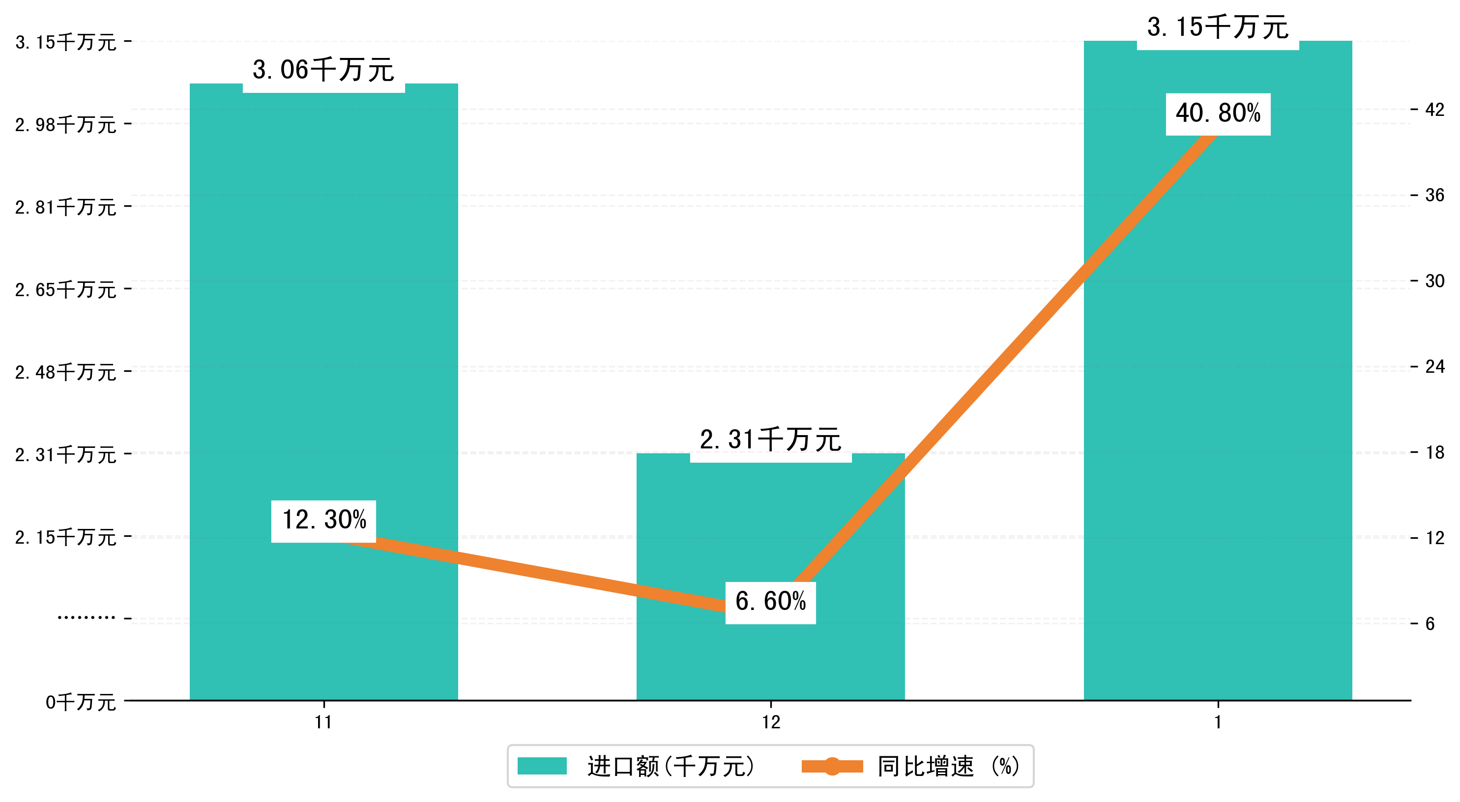 以人民币计,2025年1月曲靖市进口额为3145.2518万元,相比上月增加了833.2298万元;相比上年同期增加了895.0655万元,同比增加了40.80%。