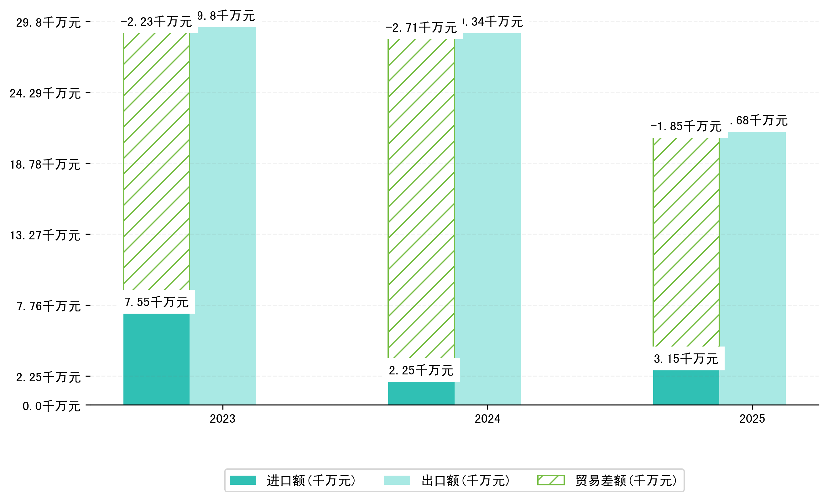 以人民币计,2025年1月曲靖市贸易差额为1,8535,9013万元(贸易顺差),相比上月减少了3,7765,2367万元,即5255,2673万美元;相比上年同期减少了8555,2649万元,同比减少-31.58%。