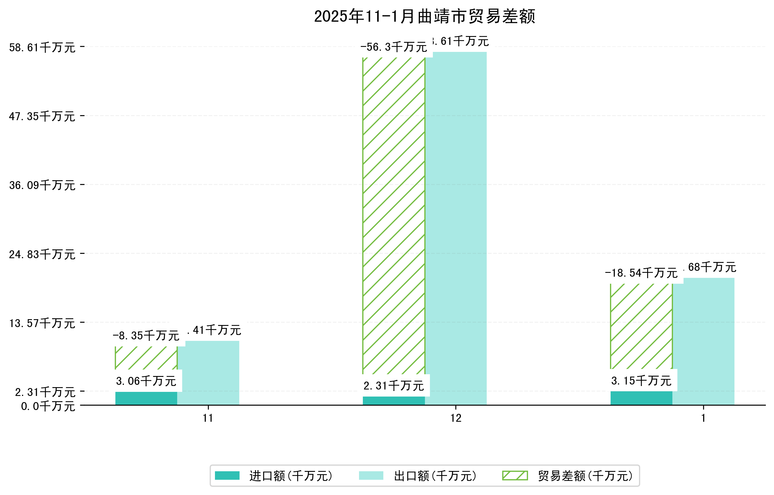 2025年1月曲靖市进出口总额及进出口差额统计分析