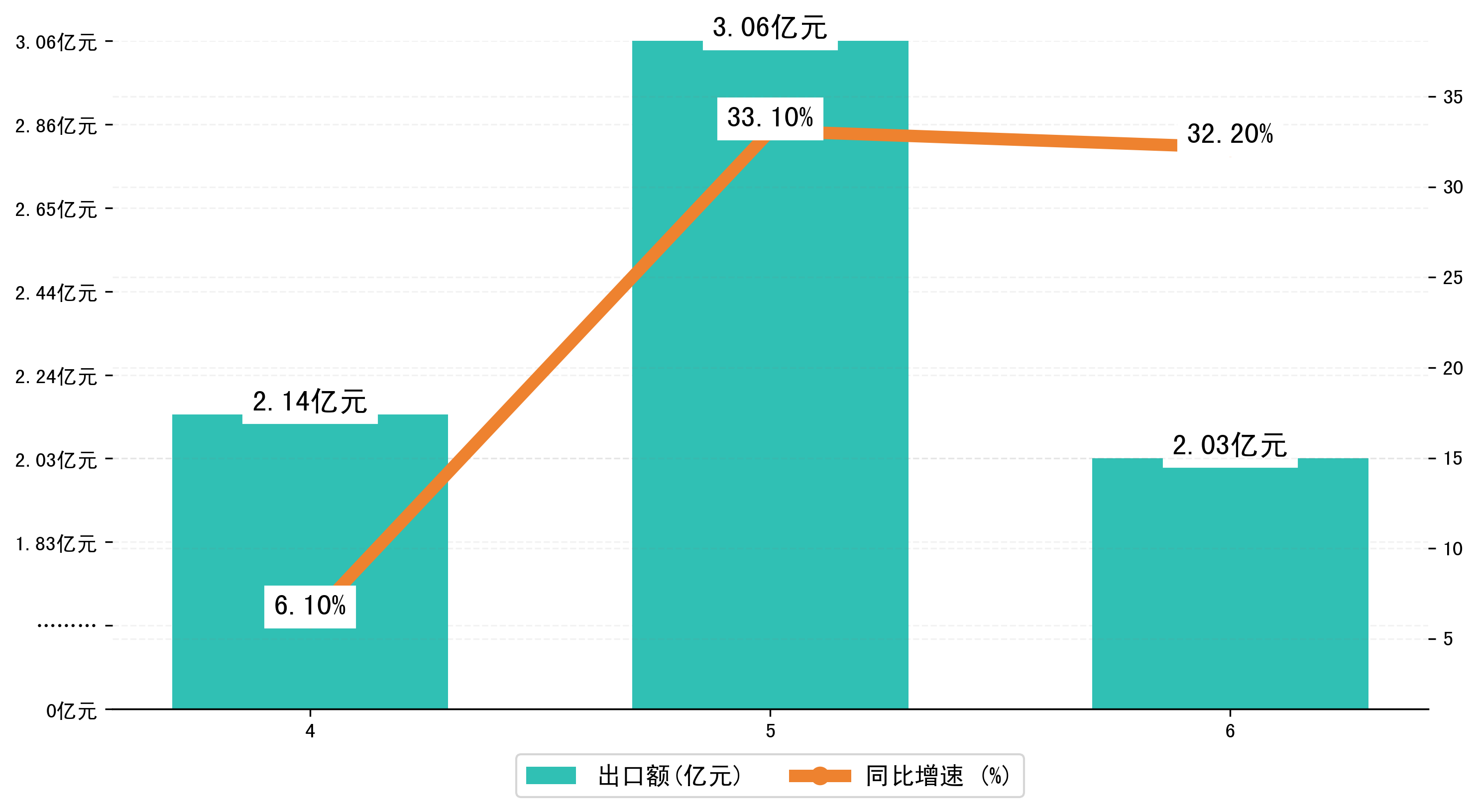 以美元计,2025年1-6月曲靖市出口额为1,7545.6683万美元,相比上年同期增加了4104.8806万美元,同比增加30.90%。