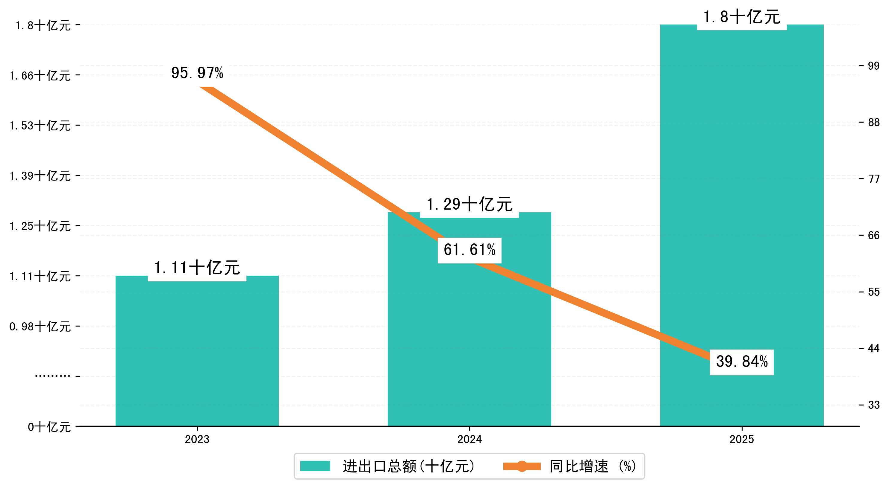 以人民币计,2025年1-6月曲靖市进出口总额为18,0090.9903万元,相比上年同期增加了5,1308.6354万元,同比增加了40.00%。