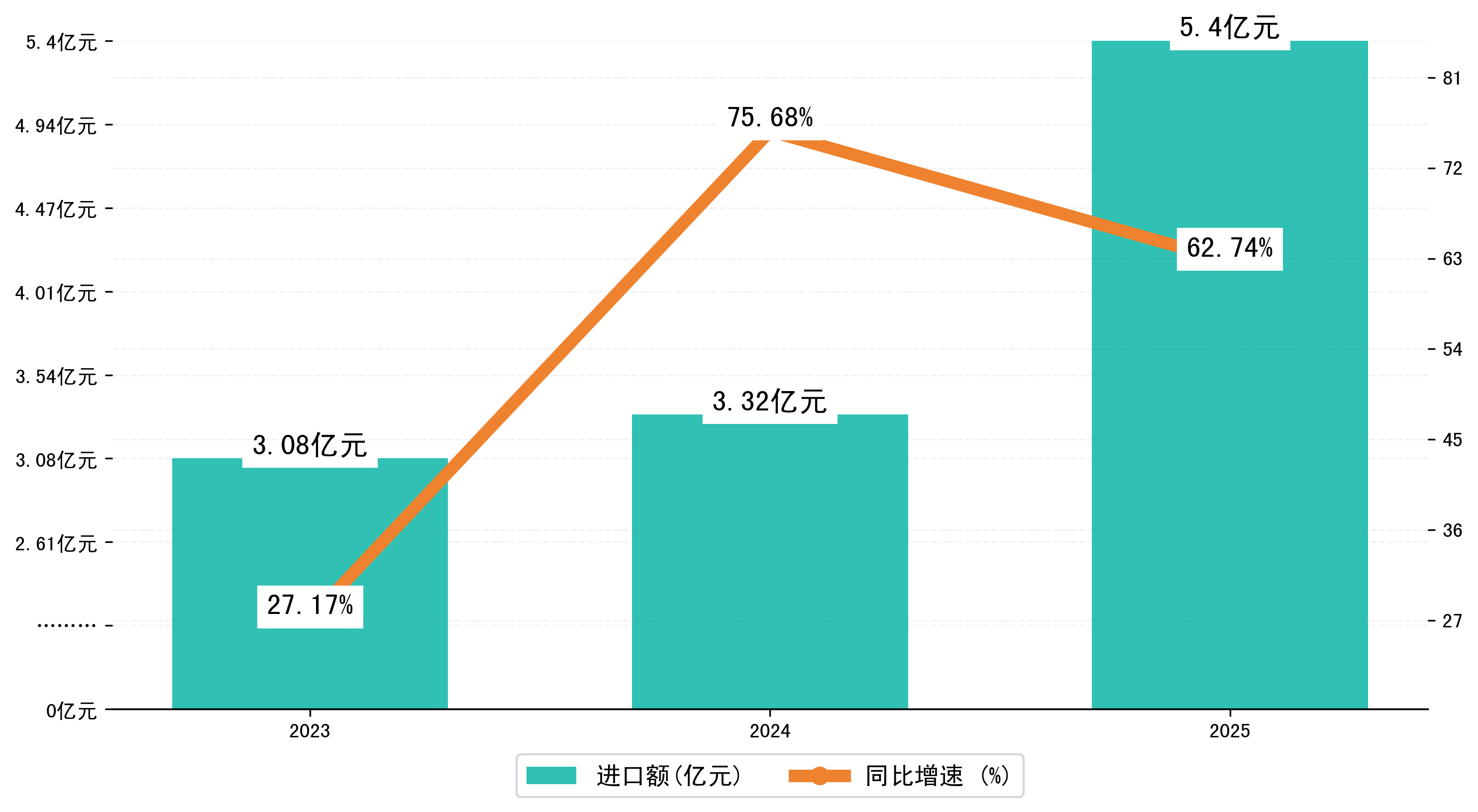 以人民币计,2025年1-6月曲靖市进口额为5,4029.7016万元,相比上年同期增加了2,0830.6688万元,同比增加了62.50%。