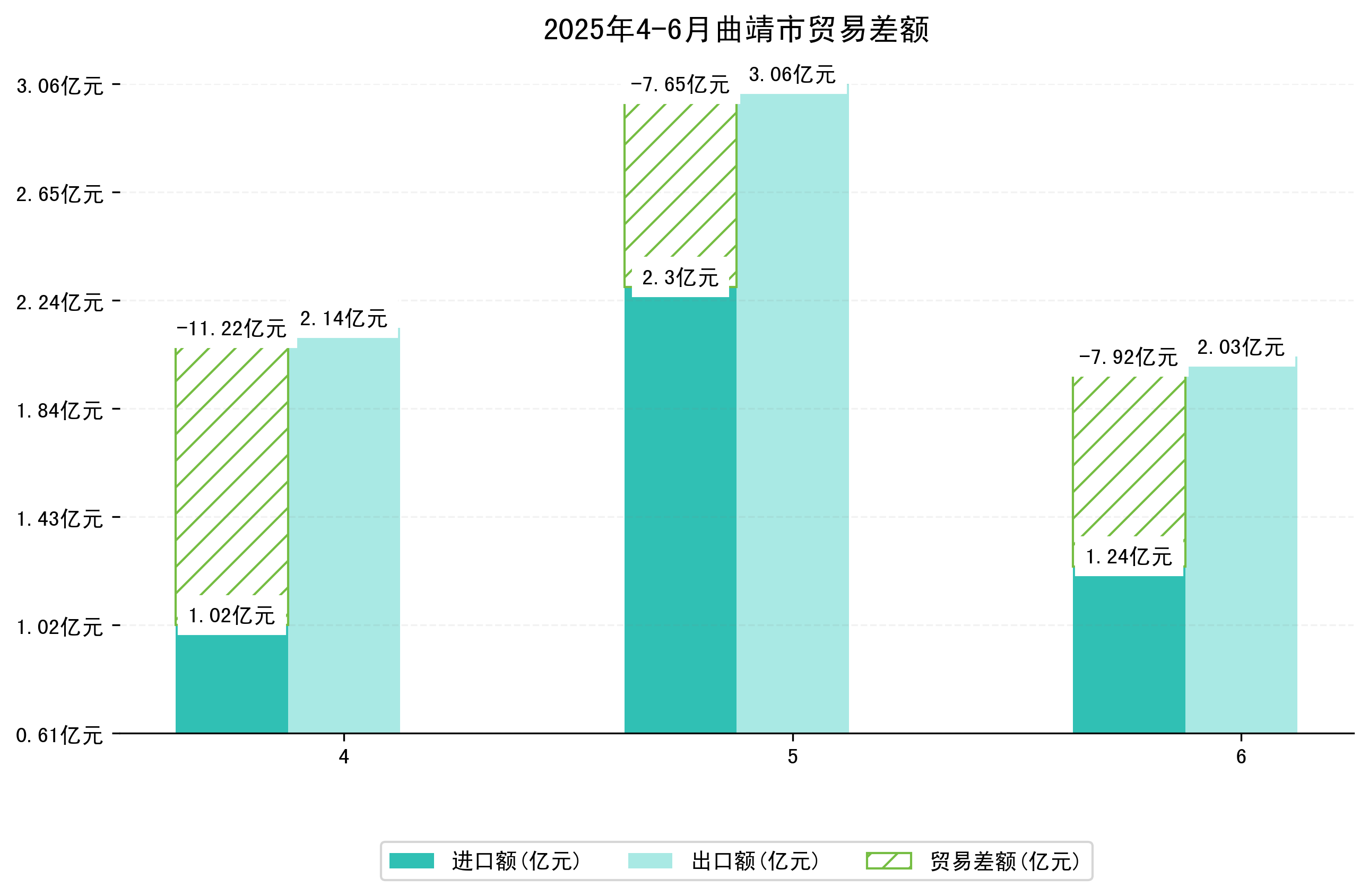 2025年6月曲靖市进出口总额及进出口差额统计分析