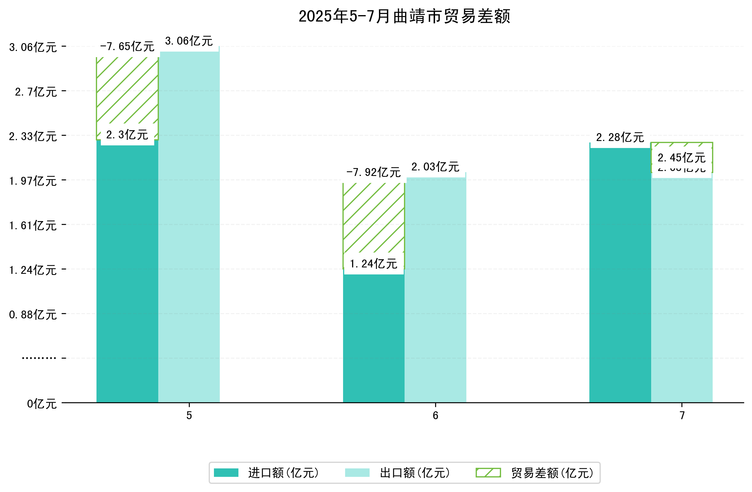 2025年7月曲靖市进出口总额及进出口差额统计分析