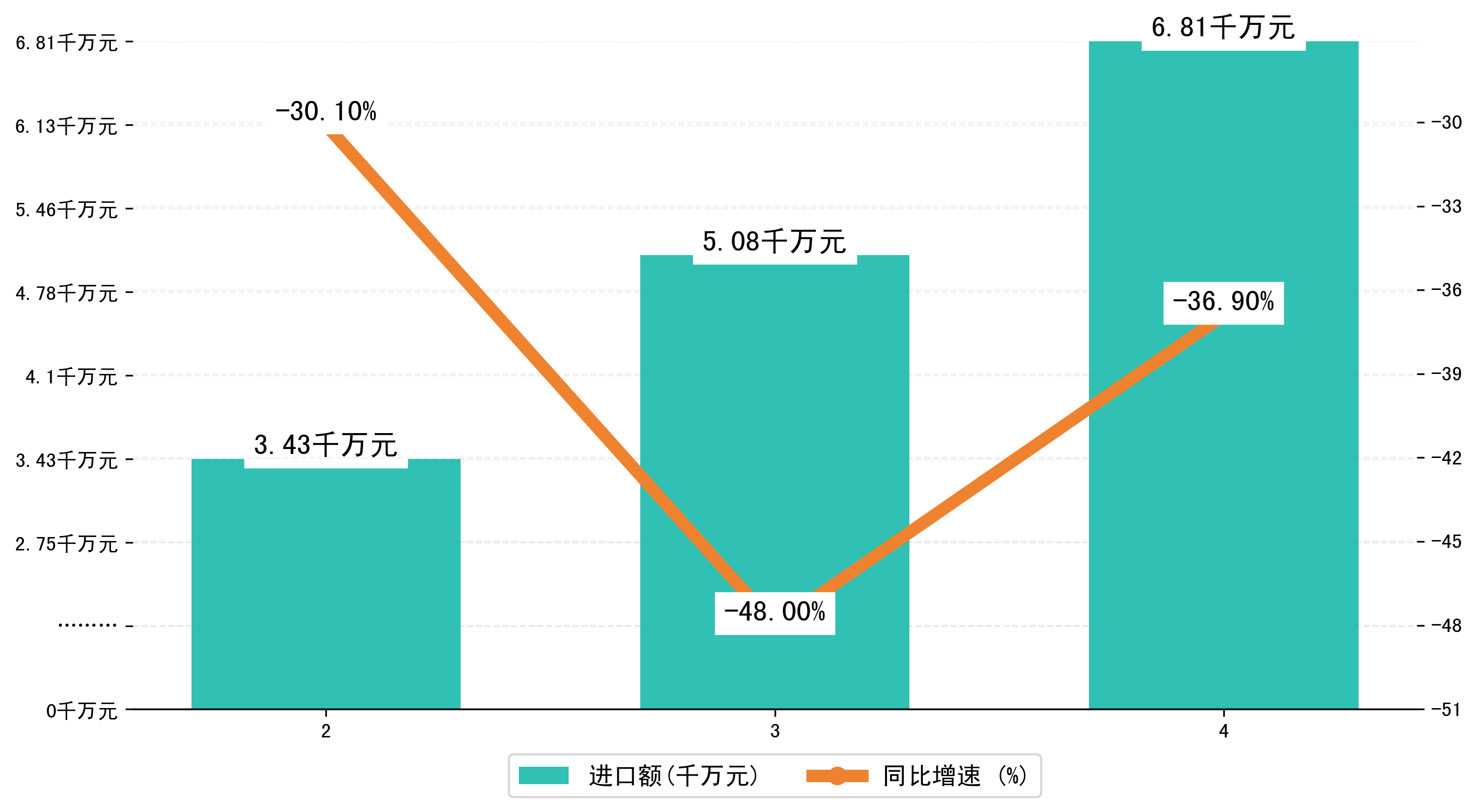 以人民币计,2023年1-4月曲靖市进口额为2,2861.1189万元,相比上年同期减少了1,3129.7221万元,同比减少了-36.90%。