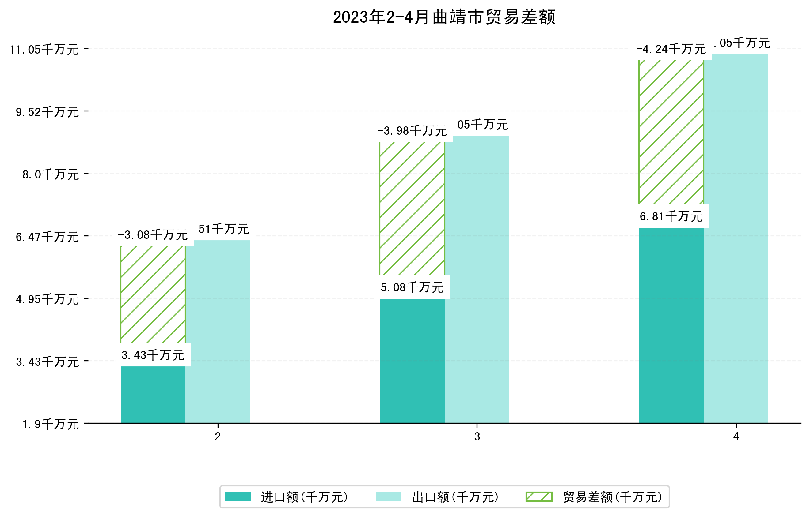 2023年4月曲靖市进出口总额及进出口差额统计分析