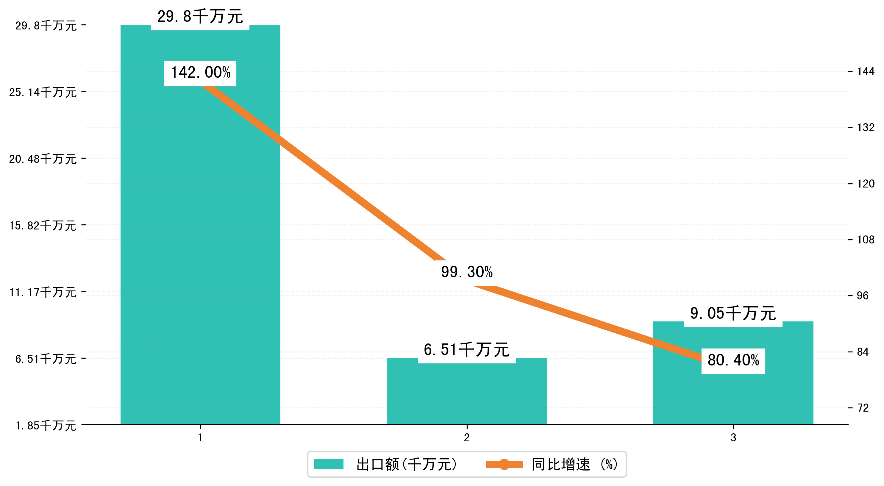 以人民币计,2023年1-3月曲靖市出口额为4,5266.3535万元,相比上年同期增加了2,0174.6476万元,同比增加了80.40%。