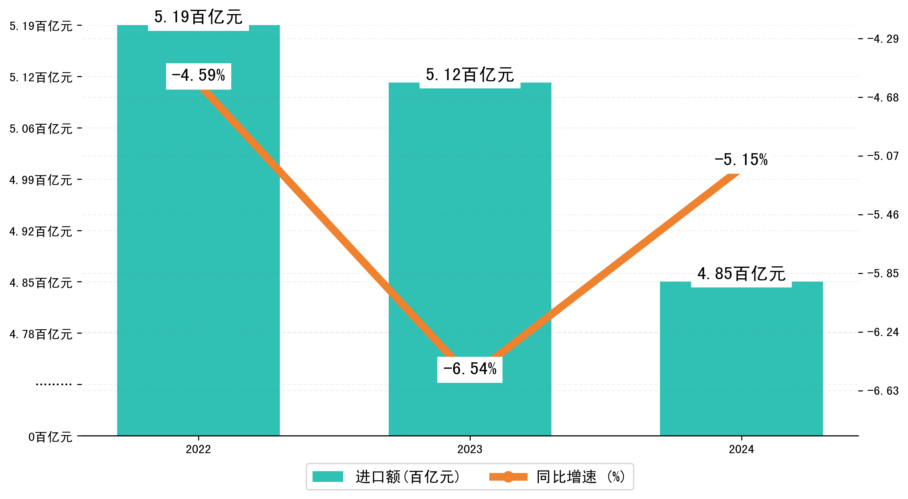 以人民币计,2024年1-7月日照市进口额为485,1815.2557万元,相比上年同期减少了26,3233.031万元,同比减少了-4.60%。