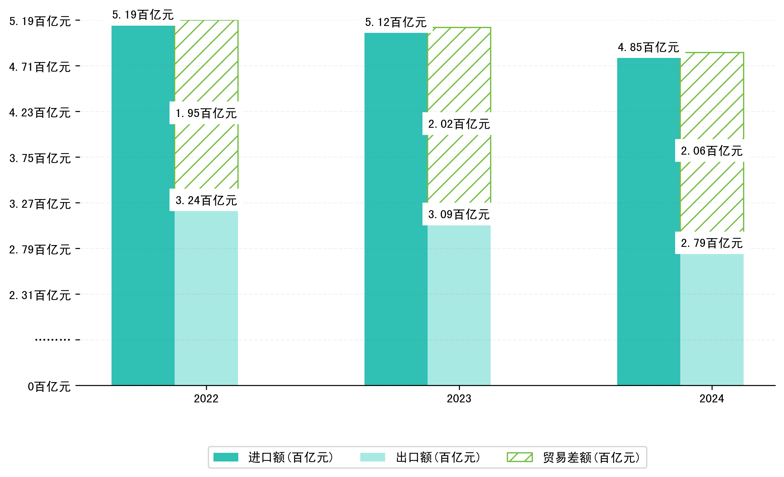 以人民币计,2024年1-7月日照市贸易差额为205,9839,5182万元(贸易逆差),相比上年同期减少了3,9240,0914万元,同比减少1.94%。