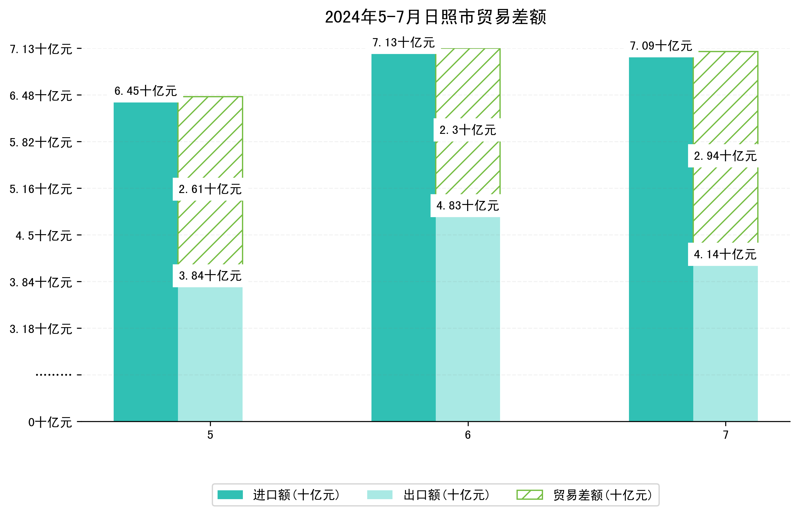 一、2024年7月日照市单月出口总额及进出口差额统计分析