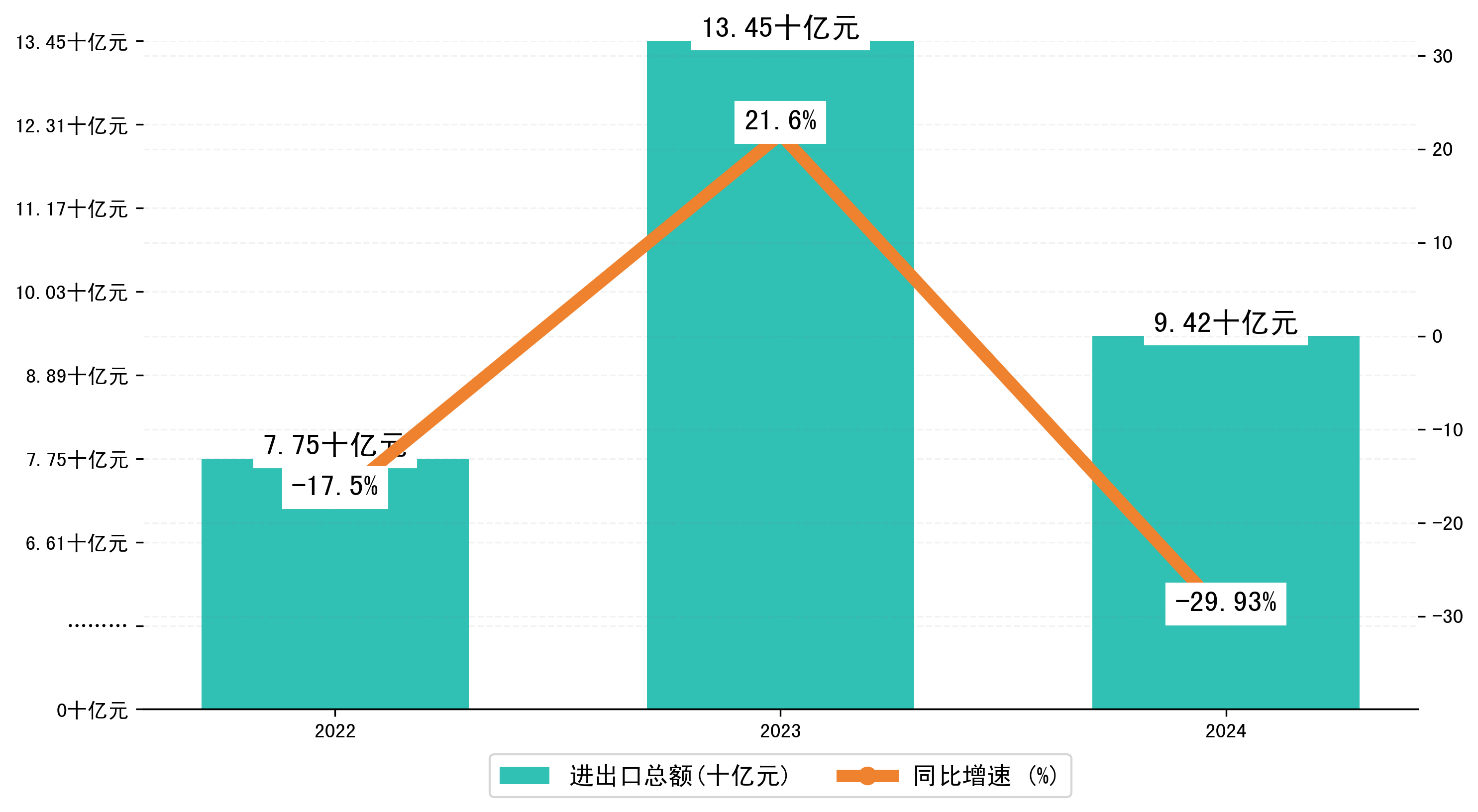 以美元计,2024年1月日照市进出口总额为13,2620.8948万美元,相比上月减少了4,2010.5154万美元;相比上年同期减少了5,9792.6208万美元,同比减少-30.80%。