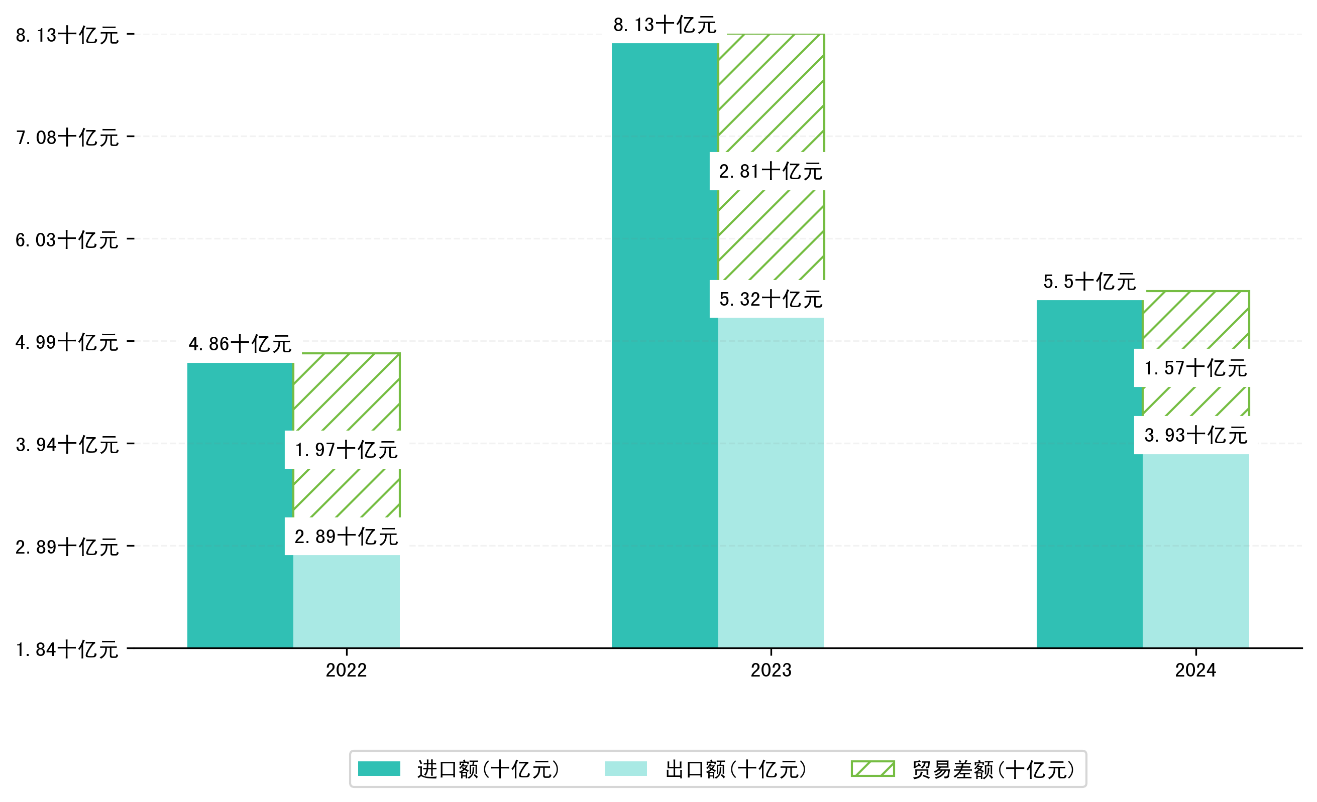 以美元计,2024年1-1月日照市贸易差额为2,2085,6018万美元(贸易逆差),相比上年同期增加了1,8167,2046万美元,同比增加-45.13%。
