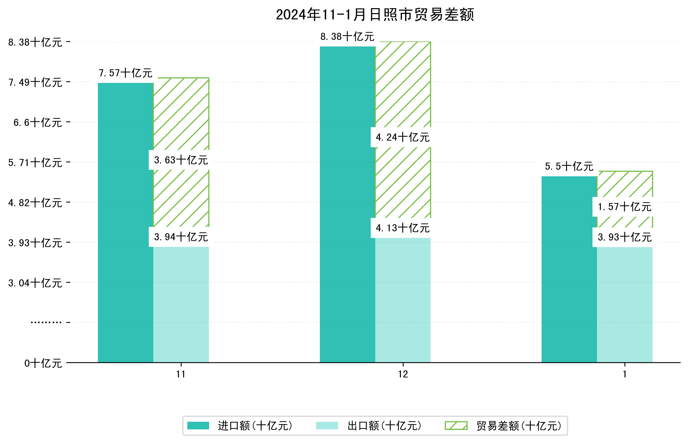 一、2024年1月日照市单月出口总额及进出口差额统计分析