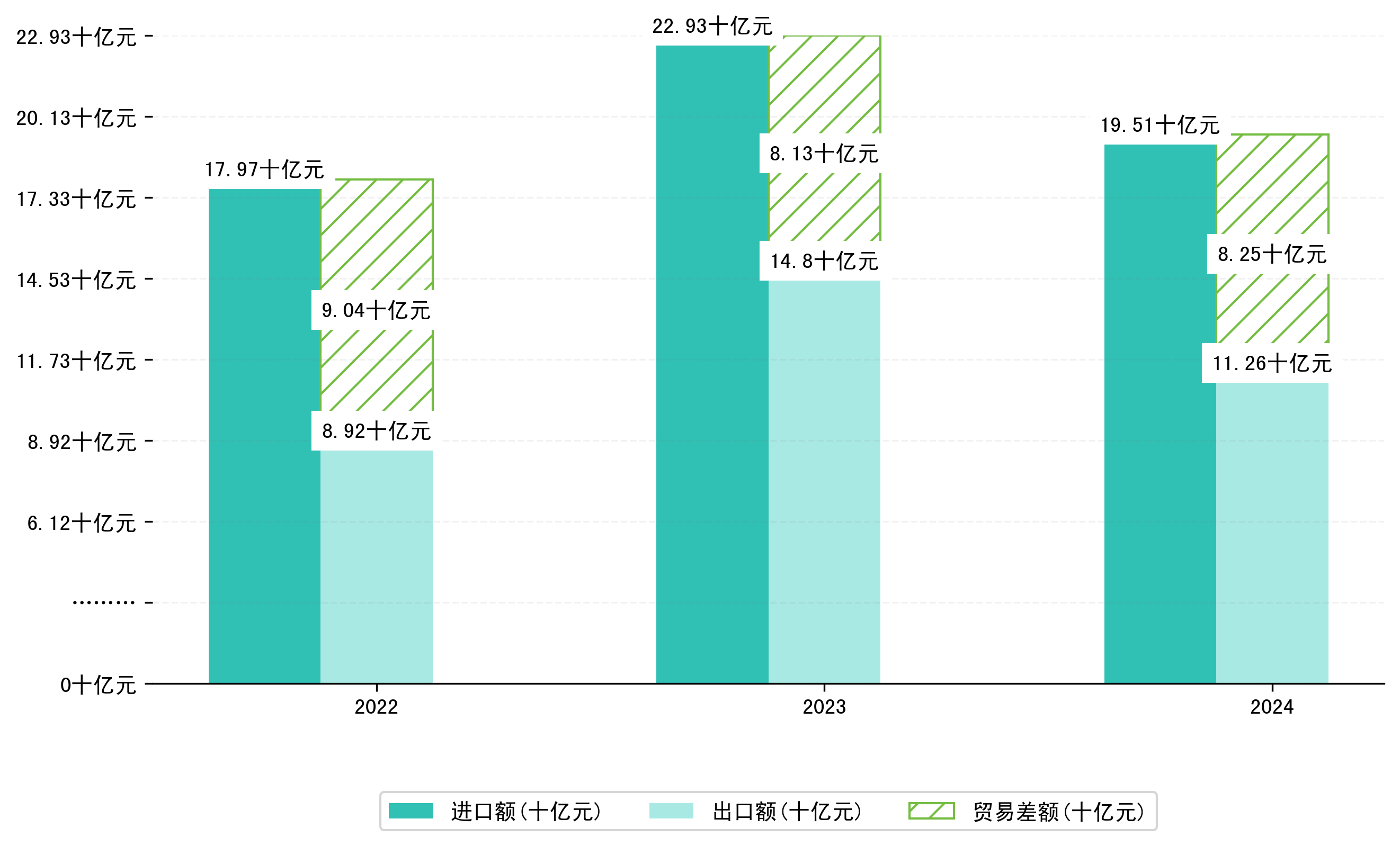 以人民币计,2024年3月日照市贸易差额为26,2141,3823万元(贸易逆差),相比上月增加了14,1389,7873万元,即1,9865,6546万美元;相比上年同期减少了1,8030,6689万元,同比减少7.39%。