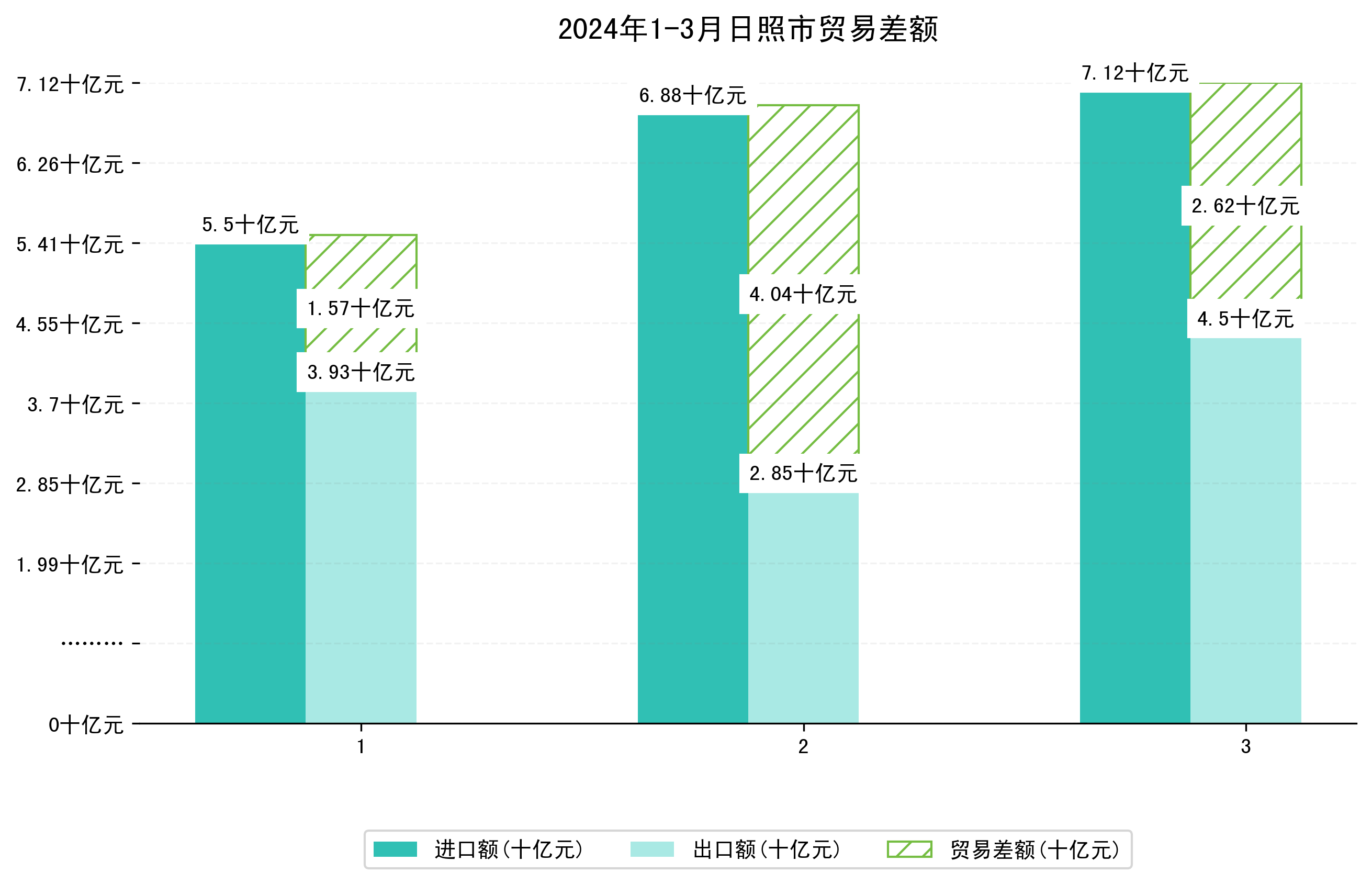 一、2024年3月日照市单月出口总额及进出口差额统计分析
