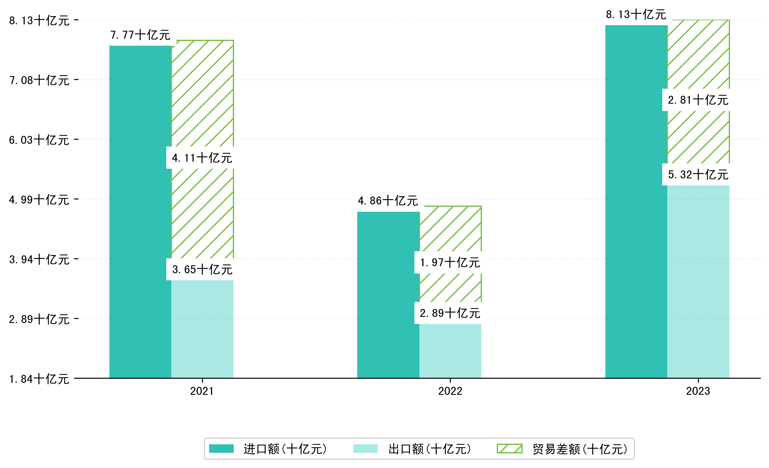 以人民币计,2023年1月日照市贸易差额为28,0998,9968万元(贸易逆差),相比上月减少了25,6342,1916万元,即3,6932,6052万美元;相比上年同期减少了8,3984,4091万元,同比减少42.63%。