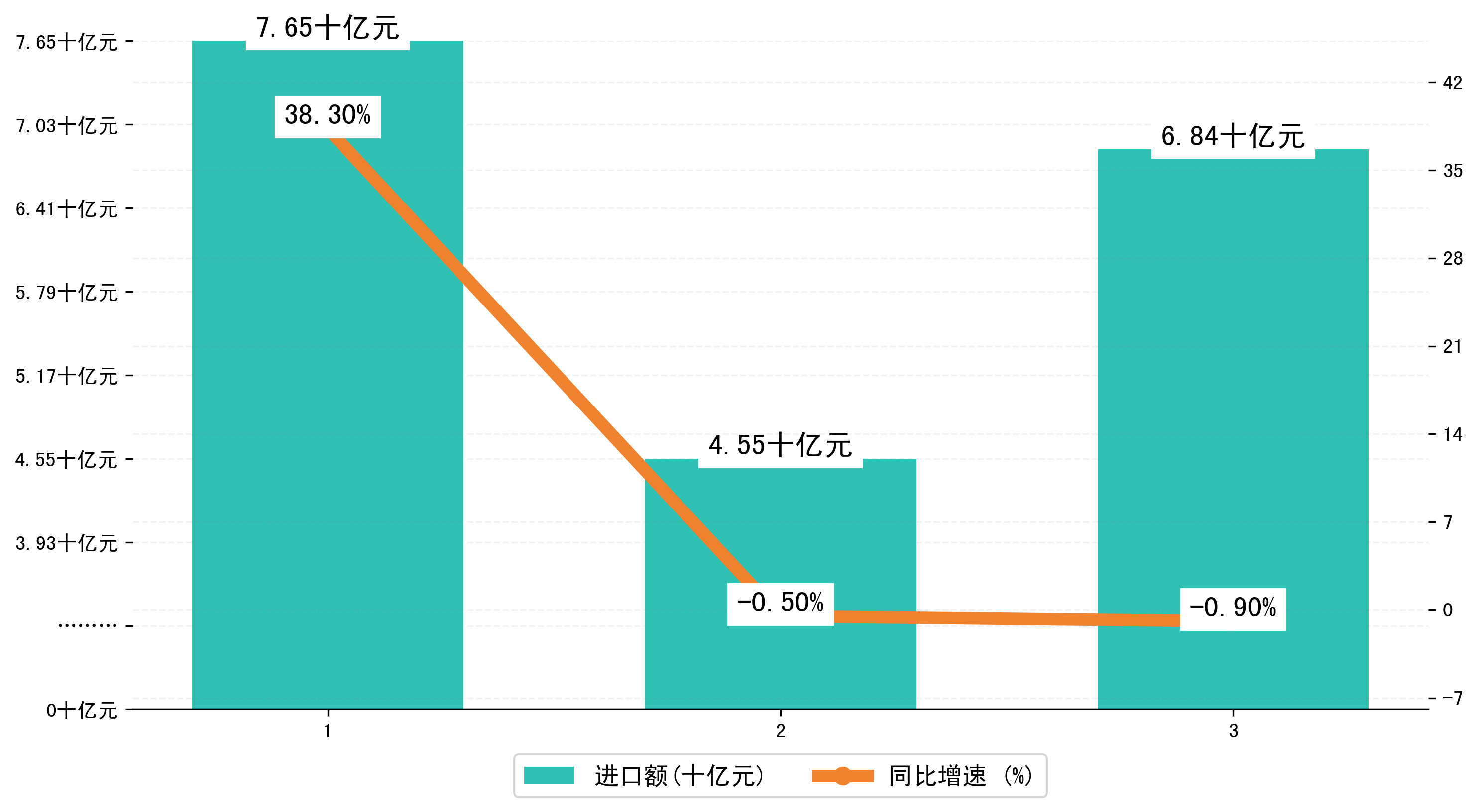 以美元计,2025年3月日照市贸易差额为3,5234,3224万美元(贸易逆差),相比上月减少了1,3703,9341万美元;相比上年同期增加了1669,7226万美元,同比增加-4.52%。
