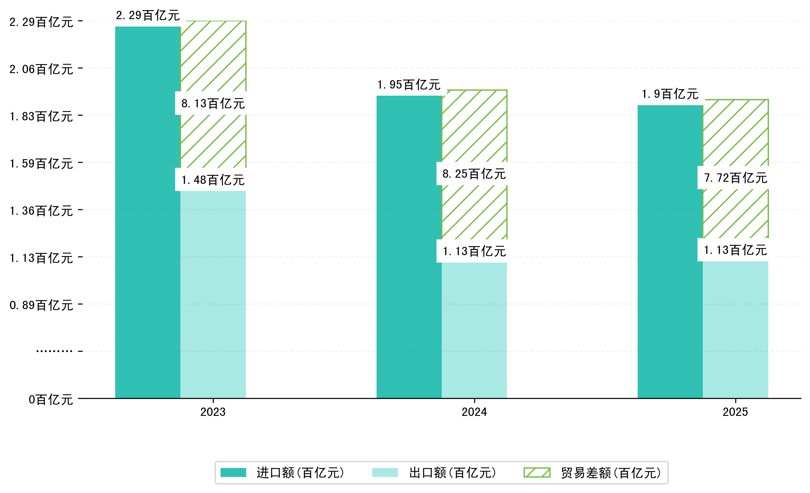 以人民币计,2025年1-3月日照市贸易差额为77,1714,3882万元(贸易逆差),相比上年同期增加了5,2965,3679万元,同比增加-6.42%。