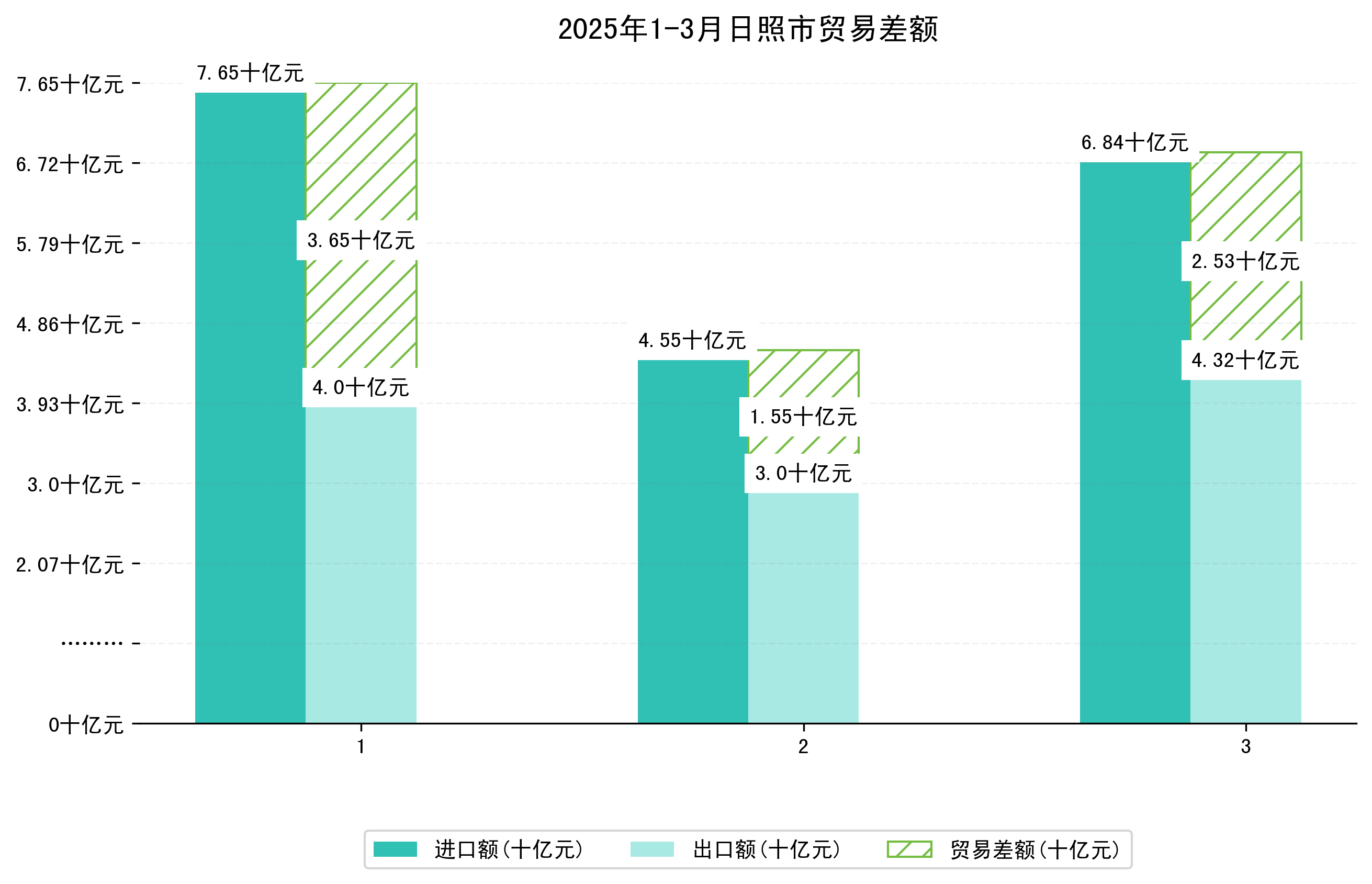 一、2025年3月日照市单月出口总额及进出口差额统计分析