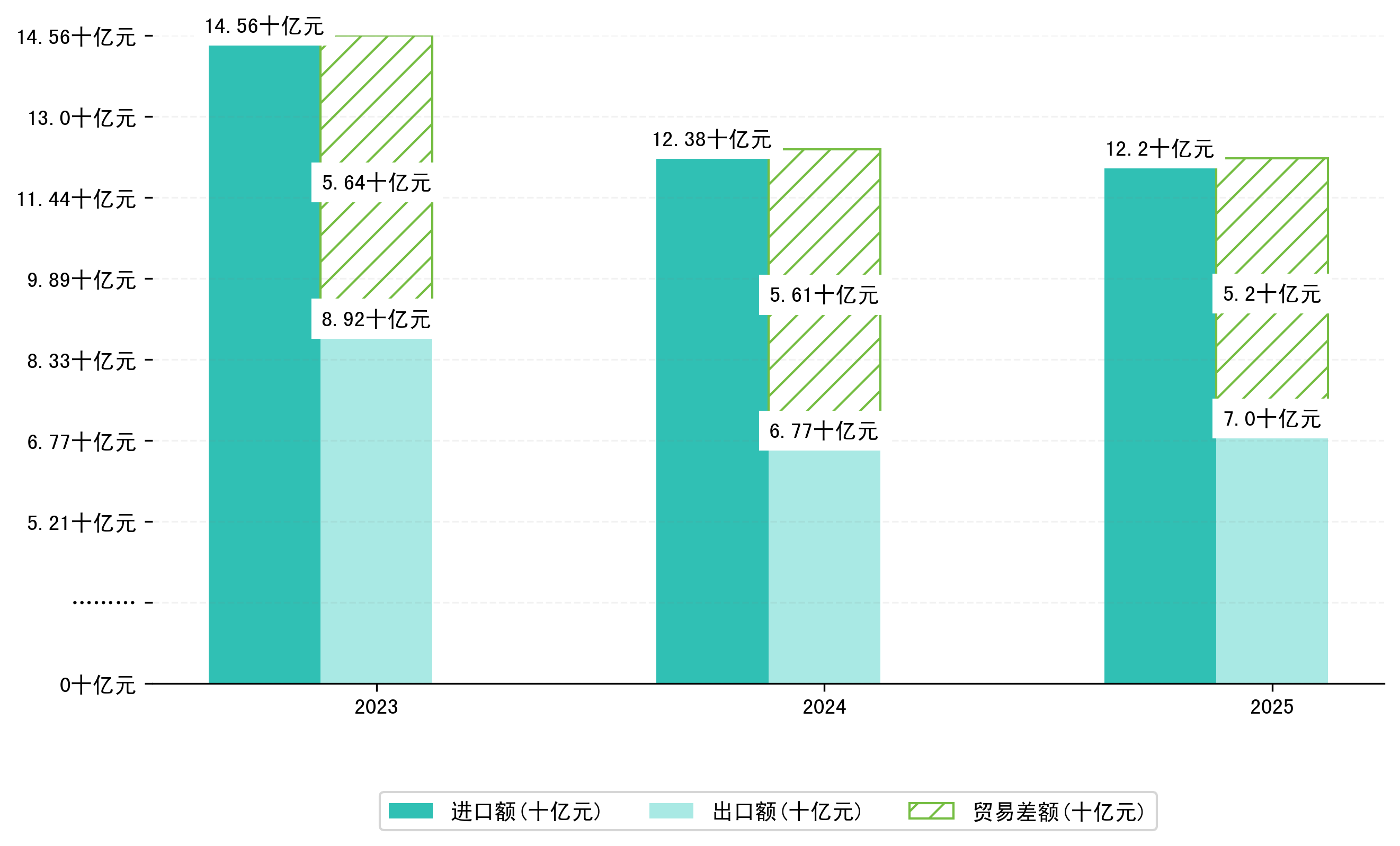 以人民币计,2025年1-2月日照市贸易差额为51,9678,6426万元(贸易逆差),相比上年同期增加了4,1140,3421万元,同比增加-7.34%。