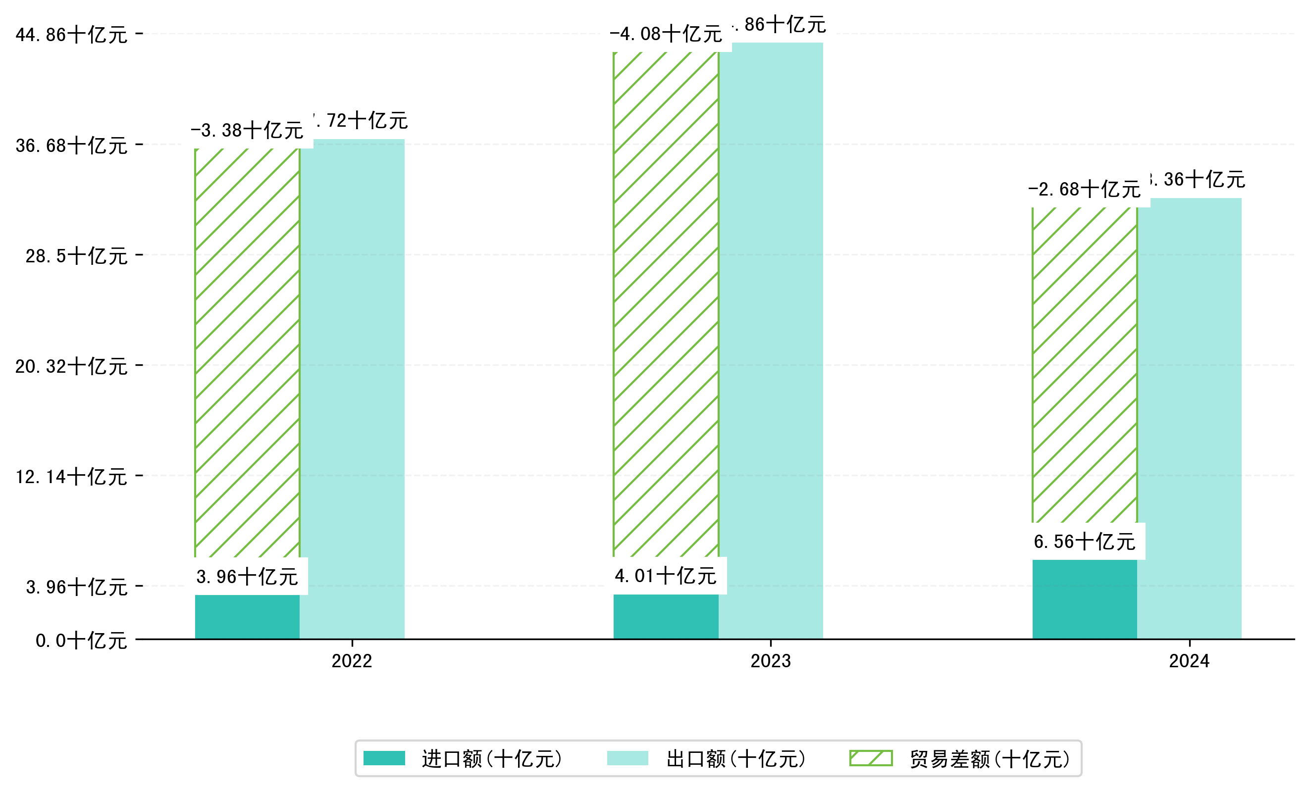 以美元计,2024年1-10月上饶市贸易差额为37,6821,2543万美元(贸易顺差),相比上年同期减少了20,8343,6911万美元,同比减少-35.6%。